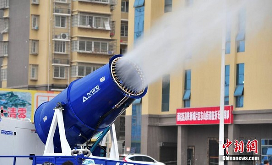 1.5小时喷洒9吨水 抗霾的神器 "雾炮车"