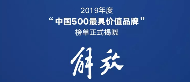 756.29亿元!解放荣登中国500最具价值品牌榜第59名!