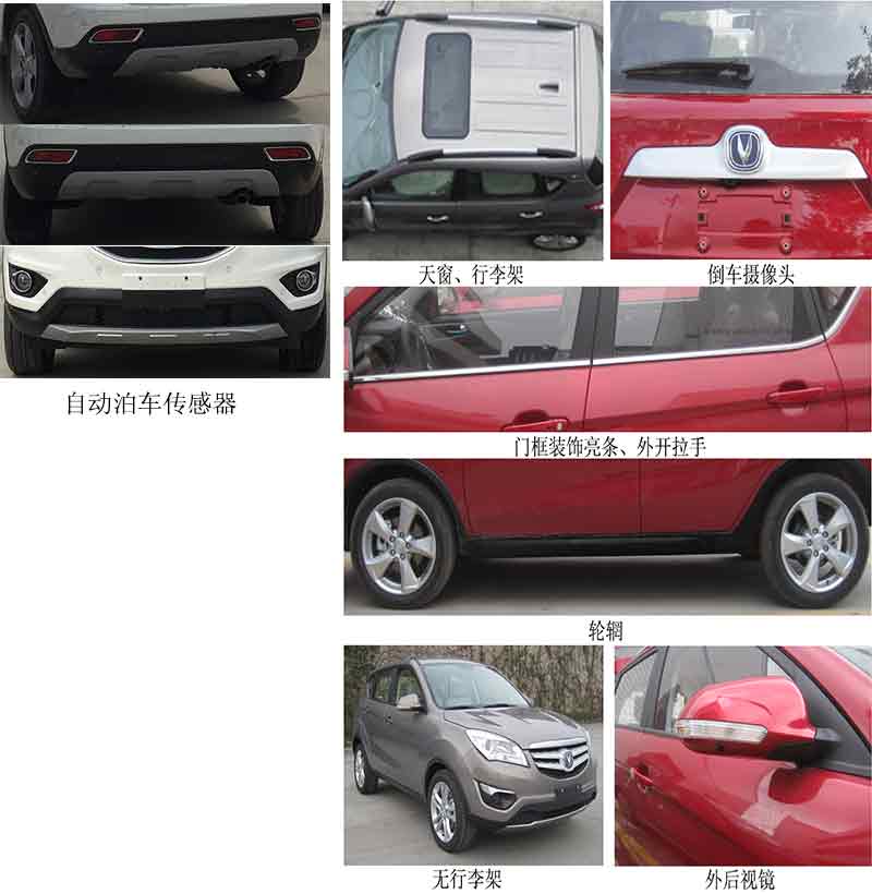 | 备注 | 选装(前排侧气囊,行李架,天窗,轮辋,门框装饰亮条,倒车摄像头,外后视镜,外开拉手,自动泊车传感器,前格栅).选装行李架时整车高度为1670mm.ESC控制器型号: ESP9,ESP9 EV5031;生产企业:博世汽车部件(苏州)有限公司;ABS控制器型号:ABS9,E1ZB000B10;生产企业:博世汽车部件(苏州)有限公司;发动机最大净功率为110kW. | ||
