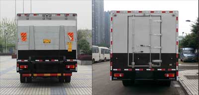 | 备注 | 1,专用装置:防弹运钞厢。2,选装前防撞杠,选装后升降式液压尾板,选装后单开门,选装侧翼门,选装导流罩。 3,当驾驶室准乘人数为2人,不安装前防撞杠和后升降式液压尾板时,车辆长度为6157mm,整备质量为5750kg,额定载质量为4120kg;只安装前防撞杠时,车辆长度为6307mm;只安装后升降式液压尾板时车辆长度为6392mm;同时安装前防撞杠和后升降式液压尾板时车辆长度为6542mm,整备质量为6200kg,额定载质量为3670kg。当选装侧翼门时,整备质量为6200kg;额定载质量为3670kg;当选装侧翼门和后升降式液压尾板时,整备质量为6650kg,额定载质量为3220kg;4, 当选装驾驶室准乘人数为3人时,额定载质量为4055kg,3605kg,3155kg。5,箱体顶部封闭不可开启。选装前防撞杠和后升降式液压尾板时不影响接近角和离去角。6,左右侧防护装置材质是Q235和铝合金,连接方式焊接和螺栓连接,后防护为裙厢结构,离地高度为540mm。7发动机最大净功率160kw。8.随底盘安装ABS型号为048610XXXX,生产厂家为KNORR. | ||