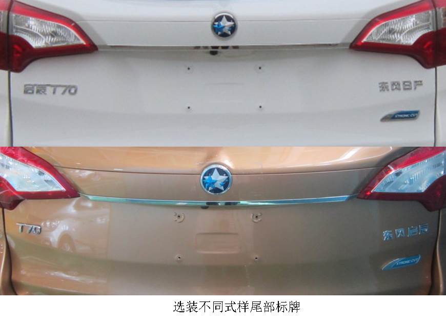 | 备注 | 该车型为国五带OBD系统(具备NOx监测和IUPR的功能)车型.ABS型号/生产企业:47660 2FL0A/博世汽车部件(苏州)有限公司,发动机最大净功率为102kW.该车型选装天窗,选装不同式样的轮辋,选装不同式样前大灯,选装不同式样前格栅,选装不同式样尾部标牌. | ||