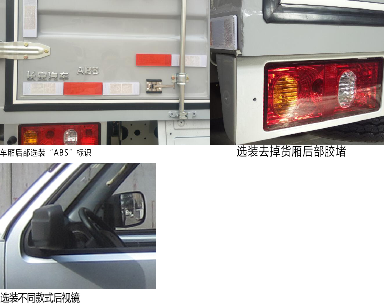 | 备注 | 1,带IUPR监测功能;选装前雾灯,选装不同款式后视镜;选装与车身同色或不同色的前保险杠;选装货厢不带侧门,选装导流罩,选装后上车踏杠;2,货厢为钢板或复合板,钢板选装平板或者瓦楞板,车厢顶部封闭不可开启; 3,钢板货厢选装带前探头,高度2550(2500), 货厢带侧门时宽度1820(1730),不带侧门时宽度1770(1690),货厢内尺寸: 3320×1700(1620)×1650;整备质量:1555kg,额定载质量1010kg,载质量利用系数为:0.73; 选装不带前探头货厢时,高度2550(2500),货厢带侧门时宽度1820(1730),不带侧门时宽度1770(1690),货箱内尺寸:3320×1700(1620)×1650;整备质量:1535kg, 额定载质量1030kg,载质量利用系数为:0.75;5,选装复合板货厢时,高度2590(2530),货厢带侧门时宽度1820(1730),不带侧门时宽度1730(1650),货厢内尺寸:3300×1650(1570)×1650,整备质量1520kg,额定载质量1045kg,载质量利用系数0.77;6,ABS型号:WX80,生产企业:浙江万向精工有限公司;发动机净功率为76.5kW;DAM15R型号发动机对应的油耗值为8.5L/100km. | ||