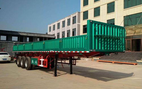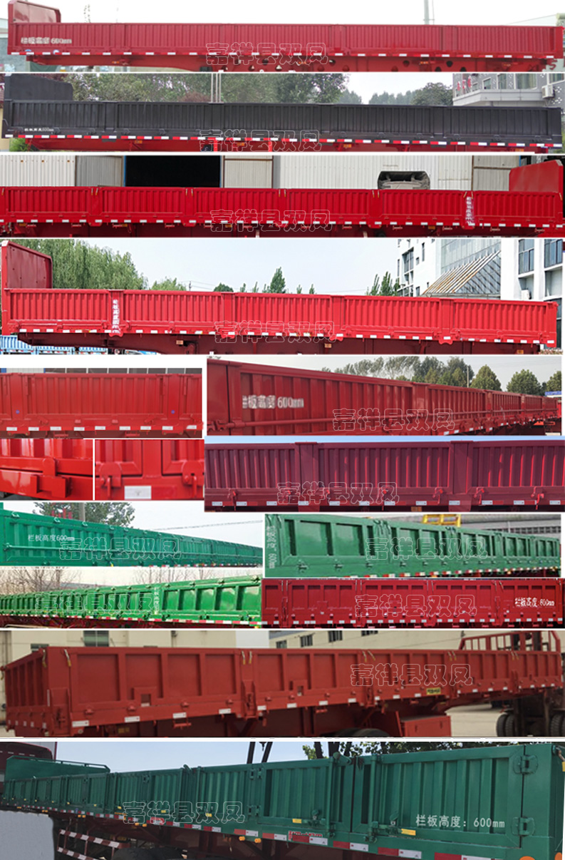 | 备注 | 卸货方式为:侧卸,该车货箱可选装侧面样式,每边开扇数可选5开扇,6开扇,3对开扇,立柱可选内插和外插及隐形锁杆样式,整车栏板可选装竖瓦楞(瓦楞数不限制),横瓦楞(瓦楞数不限制),方管平板,镀锌板,铝合金板,方管十字花样式,侧,前,后部样式可任意组合,选装空气悬挂;选装尾部标志板安装位置(后货厢栏板上或后防护立柱上),选装两联尾灯或三联尾灯;灯具可选装圆形和矩形;选装铁工具箱及铝合金工具箱,选装工具箱样式,选装单侧装工具箱、两侧装工具箱和不装工具箱。各种选装可任意组合。当车长是13000mm,轴距为(mm)6880+1310+1310,6780+1310+1310,6680+1310+1310,6580+1310+1310后悬为2300mm,当车长是12500mm,轴距为(mm)6380+1310+1310后悬为2100mm当车长是12000mm,轴距为(mm)6280+1310+1310后悬为1900mm由于牵引车高度不同,而使半挂车总高度不同。一,ABS:型号:CM2XL-4S/2K(4S/2M);生产厂家:广州市科密汽车制动技术开发有限公司。二,防护:防护材料均采用Q235B,与车辆连接方式为焊接。 后防:离地高度为490mm,断面为160mmX50mm。 | ||