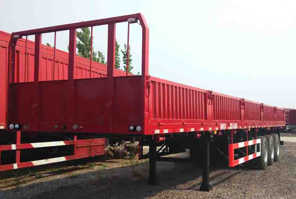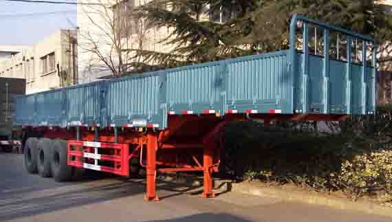 | 备注 | 该半挂车前段选装鹅颈结构,同时栏板选装瓦棱板结构,立柱选装内插样式。防护装置材料材质:Q235;侧防护与车 架采用螺栓连接方式;后防护与车 架采用焊接连接方式;后部防护装置断面尺寸(mm)180×40×4,离地高度(mm)540;ABS系统生产厂/型号:山东明水汽车配件厂,广州市科密汽车制动技术开发有限公司/4S/2M,CM2XL-4S/2M。 | ||
