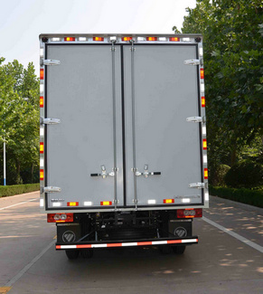 | 备注 | 车厢顶部封闭,不可开启;可选装导流罩,可选装新保险杠,可取消侧开门,可选装瓦楞板货厢;2800轴距对应整车长度5445,对应货箱内长2650;2600轴距对应整车长度5135,对应货箱内长2340.侧面防护装置材料为冷板B-2.0GB/T708/20-GB/T13237,后下部防护装置材料为矩型管20-D-100×50×3.均为螺栓连接.后下部防护装置截面尺寸100mm×50mm,离地高度430mm.发动机油耗申报值为12.4L/100km;ABS型号:YF8,生产厂家:武汉元丰汽车电控系统有限公司;选装后视镜型式;选装不同风格的货厢型式 | ||