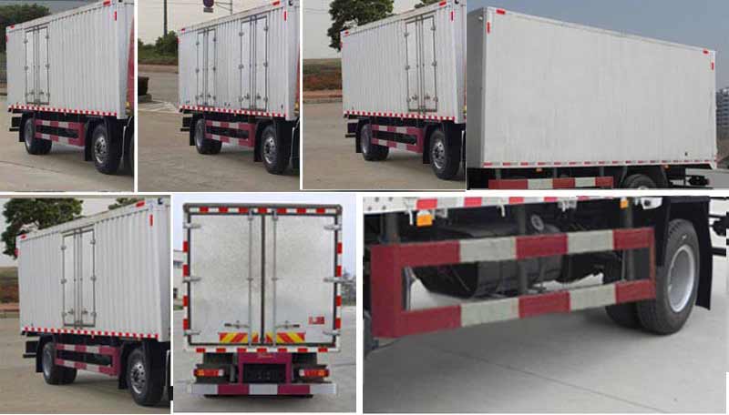 备注 | 车厢顶部封闭,不可开启.选装顶部导流罩,选装遮阳罩,选装进气管道,选装铁质油箱,选装油箱,尿素箱安装位置,选装不同形式货箱;选装尾部升降板,尾板收起状态的水平长度280mm;后门选装单根锁杆.防护装置材料为Q235,侧防护装置与车辆连接方式为螺栓连接,后防护装置与车辆连接方式为焊接,后部防护装置断面尺寸:50mm(厚度)×140mm(高),离地高度为480mm.该车安装具有卫星定位的行驶记录仪;ABS型号/生产企业对应关系为:ABS-E 4S/4M/威伯科汽车控制系统(中国)有限公司;VIE ABS-Ⅱ/浙江万安科技股份有限公司;CM4XL-4S/4M/广州瑞立科密汽车电子股份有限公司;发动机油耗申报值(L/100km)分别为WP6.220E50/33.9,WP6.245E50/33.9,YC6JA220-50/33.9,YC6JA240-5033.9,WP6.200E50/33.9,YC6JA200-50/33.9。 |