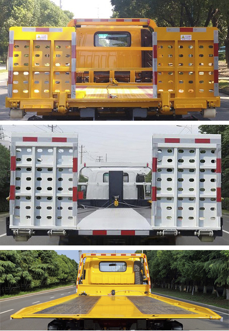 | 备注 | 整备质量为7620kg时托举质量为2735kg,整备质量为7100kg时托举质量为3255kg;该车用途为道路故障车辆、城市违章车辆托运;主要专用装置有平板机构、绞盘、托臂机构及油缸;侧防护材质为铝合金,连接方式:螺栓连接;后防护由车身专用装置替代,离地高度450mm;选装后部结构,后部尾板收起状态的水平长度为150mm或70mm;ABS及控制器型号为:APG3550500H1,生产厂家为:浙江亚太机电股份有限公司; 随底盘选装驾驶室 | ||