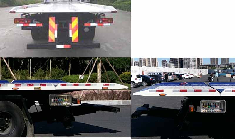 | 备注 | 该车主要用于道路车辆清障,主要专用装置为平板,绞盘,托举装置,选用4700mm轴距时,托举质量4800kg,整车长9190mm,后悬长3050mm。选装加强型结构,整备质量7800kg,托举质量4500kg。选装5000mm轴距时,整备质量8200kg,托举质量4100kg,整车长9690mm,后悬长3250mm。选装加强型结构,此时整备质量8800kg,托举质量3500kg。两种轴距可选装整车宽度2480mm。选装无托套托臂。选装B型灯架。选装两种驾驶室前面罩之一。选装上装平板外观。侧防护与底盘纵梁间采用螺栓联接,材质为Q235A,后部为专用装置结构替代后部防护功能,其下缘离地高度为485mm。ABS型号:3631010-C2000,生产厂家:东科克诺尔商用车制动系统(十堰)有限公司。 | ||