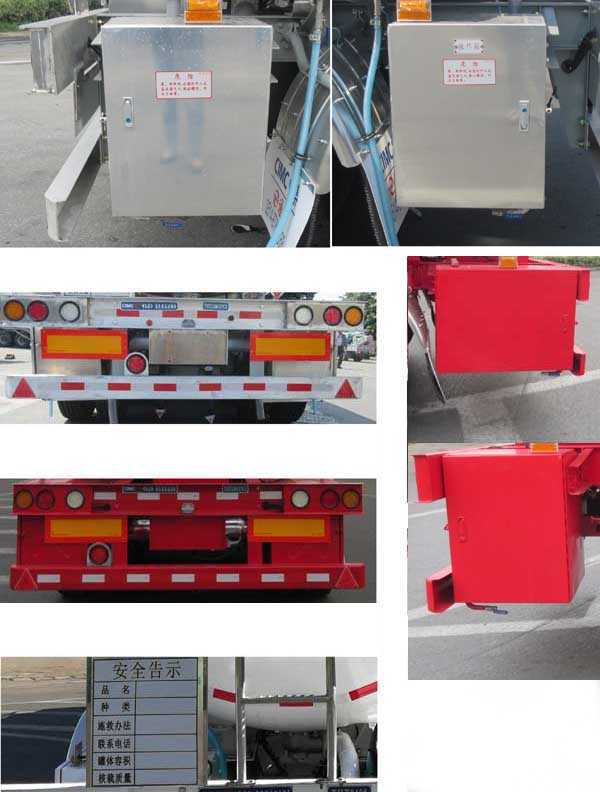 | 备注 | 罐体有效容积46立方米,罐体外形尺寸( mm):长12000长轴2530短轴2010.类项号:3.危险品的类别为FL类.该车装空气悬架.选装侧面防护装置、及爬梯可在罐体前部或后部或前后都装.正后的灯具选装,挡泥板选装.选装罐体顶部护栏及护肩结构.选装侧面尾部工具箱.选装尾部标志板位置.选装后部罐体上的组合灯具.灭火器位置选装.ABS厂家、型号:浙江万安科技股份有限公司,VIE-TABSⅡ,或广州瑞立科密汽车电子股份有限公司、CM2XL-4S/2K(4S/2M),或威伯科(上海)管理有限公司,4005000880或翰德汽车产品(苏州)有限公司,364565001或广州市西合汽车电子装备有限公司、XH-GQ4S2M-E01.EBS厂家、型号:克诺尔商用车系统企业管理(上海)有限公司,K11061XVXX或瀚德汽车产品(苏州)有限公司,4S2M或威伯科(上海)管理有限公司, 4801020640或浙江万安科技股份有限公司,VIE TEBS-I.侧防护材料为铝合金,螺栓连接;后防护材料为铝合金或Q235,螺栓连接.后防护断面尺寸80×150mm,离地高495mm.采用适用于牵引危险品运输半挂车的牵引车. | ||