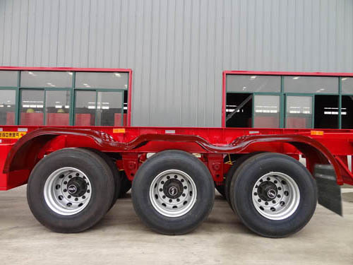 | 备注 | 该车用于运输40英尺非剧毒化学品及爆炸品集装箱,采用适用于牵引危险品运输半挂车的牵引车.牵引销处车架总高度为130mm,150mm,170mm,180mm,190mm;.ABS系统控制器厂家:广州瑞立科密汽车电子股份有限公司,型号:CM2XL-4S/2M.选装挡泥板样式,选装前部横梁与导向块,选装大梁异型孔结构,选装4锁,10锁,14锁样式.侧防护材质为铝合金,和车架螺栓连接,后防护材质为Q235B,和车架焊接连接.截面为140mm×50mm,离地高度为500mm. | ||