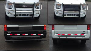 | 备注 | 1.专用装置:防弹防暴运钞厢等;2.选装长、短车身,选装短车身整备质量为2490kg,额定载客2+3人时载质量为735kg,额定载客3+3人时载质量为670kg,接近角/离去角为22/25;选装长车身整备质量为2600kg,额定载客2+3人时载质量为625kg,额定载客3+3人时载质量为560kg,接近角/离去角为22/21;3.选装2种前、2种后保险杠,无前后保险杠时短车身和长车身长分别为4963,5260,前悬/后悬为933/1097,933/1394;有前保险杠时短车身和长车身长分别为5160,5457,前悬/后悬为1130/1097,1130/1394;有前、后保险杠时短车身和长车身长分别为5260,5560,前悬/后悬为1130/1197,1130/1497;3.选装电动天窗、手动天窗、隐形射击孔和后尾门单开;4.随原车选装低顶高度为2070mm,对应的VIN为LJXBLDDB;中低顶高度2150mm对应的VIN为LJXBLDDB。选装中顶高度为2385mm,对应的VIN为LJXBMDDB;5.随原车选装豪华款大灯。6.随原车安装ABS,型号:6C112M110 A*,生产厂家:博世汽车部件(苏州)有限公司。7.扩展一种前保险杠样式.8,扩展一种后双开门样式。9,该车型可选装ETC车载装置。 | ||