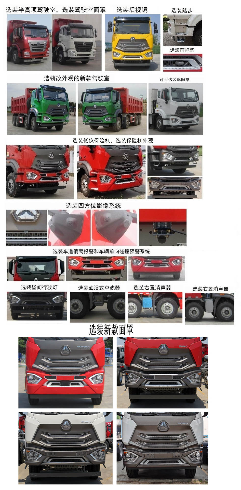 | 备注 | 该车选装普通或半高顶驾驶室。选装改外观的新款驾驶室。选装低位保险杠。选装保险杠外观。选装踏步。选装四方位影像系统。选装车道偏离报警和车辆前向碰撞预警系统。可不选装遮阳罩。选装昼间行驶灯。选装后视镜。选装前拖钩。整备质量与额定载质量、载质量利用系数一一对应。车长与轴距、箱长、后悬参数对应关系如下:9560/1800+3200+1350/6500或6800/1660;9560/1800+3175+1400/6500或6800/1635;9760/1800+3200+1350/7000/1860;9760/1800+3175+1400/7000/1835。货箱自卸方式为后卸。该车可选装不同的货箱结构。选装U型箱,U型箱侧裙板为选装件。选装多种环保顶盖结构(包括篷布盖)。货箱上前伸的帽檐可取消。该车选装MC09.34-50、MC09.36-50、MC09.38-50、MC09.40-50、WP8.340E51、WP9H350E50、WP10H400E50发动机的油耗申报值均为41.0L/100km。侧面防护装置所用材料材质:Q235A,连接方式为螺栓连接。后部防护装置所用材料材质:Q235A,连接方式为螺栓连接+焊接,断面尺寸为120×120mm,离地高度为480mm。ABS系统型号为446 004 6300,ABS生产企业为威伯科汽车控制系统(中国)有限公司。安装具有卫星定位功能的行驶记录仪。该车可选装油浴式空滤器。该车可选装右置消声器。选装消声器。选装ETC车载装置。选装新款面罩。 | ||