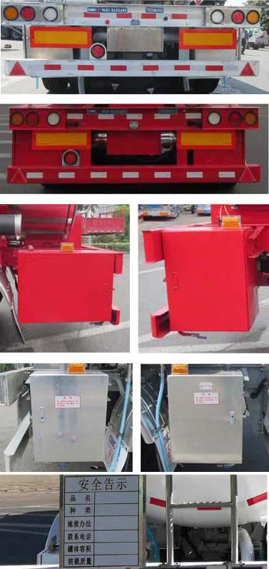 | 备注 | 罐体有效容积49.5立方米,罐体外形尺寸(mm):长12000长轴2530短轴2110.危险货物运输车辆的类型为:FL型.危险品类项号为:3.选装侧面防护装置,牌照板及爬梯可在罐体前部或后部或前后都装.多种喷涂油漆,挡泥板.选装后部或侧面尾部操作箱(或工具箱).该车装空气悬架.选装后部罐体上的组合灯具.选装尾部标志板的位置.选装灭火器位置及样式.选装前部及后部爬梯样式,选装正后上横梁结构,选装罐体顶部护肩或集液槽及顶护栏,选装握手盒结构布置,选装软管存放箱位置.ABS厂家,型号:威伯科(上海)管理有限公司,4005000880或浙江万安科技股份有限公司,VIE-TABSⅡ或广州市西合汽车电子装备有限公司,XH-GQ4S2M-E01或广州瑞立科密汽车电子股份有限公司,CM2XL-4S/2K(4S/2M)或翰德汽车产品(苏州)有限公司、364570001.EBS厂家,型号:克诺尔商用车系统企业管理(上海)有限公司,K11061XVXX或瀚德汽车产品(苏州)有限公司,4S2M或威伯科(上海)管理有限公司, 4801020640或浙江万安科技股份有限公司,VIE TEBS-I.侧防材料为铝合金,螺栓连接;后侧防材料为铝合金或Q235,螺栓连接;后防护断面尺寸80×150mm,离地高495mm.采用适用于牵引危险品运输半挂车的牵引车. | ||