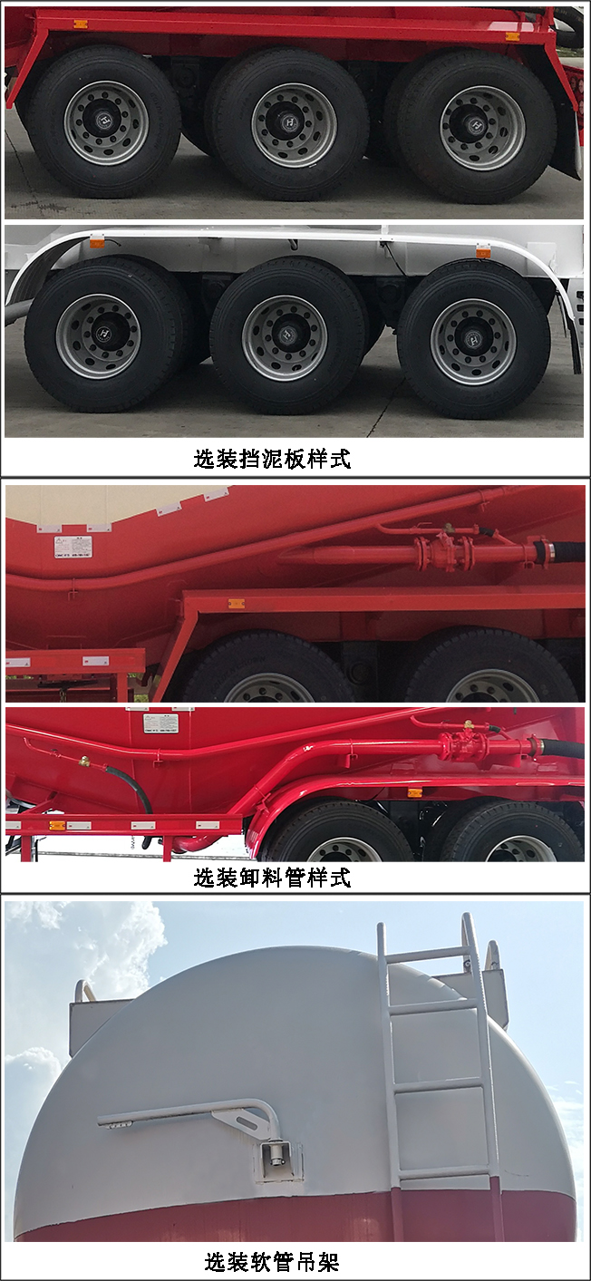 | 备注 | 1.已装侧后反光标识。2.罐体尺寸:罐体长度8274毫米,最大截面高度2950毫米,宽度2280毫米,封头直径1950毫米,有效容积33立方米。运输介质:水泥,密度:1000千克/立方米。3. 选装机组双动力平台,选装电机平台,选装无机组平台,选装前爬梯,选装尾灯安装形式,选装顶部封闭或开放式走道板,选装后爬梯安装形式,选装轮胎挡泥罩型式,选装侧面管线结构型式,选装软管吊架。4. 选装机组电机平台时,尺寸长为9705毫米,额定载质量为32350千克,整备质量为7650千克;不选装机组电机平台,尺寸长为8885毫米,额定载质量为33000千克,整备质量为7000千克。5.ABS厂家:广州市西合汽车电子装备有限公司,型号:XH-GQ4S2M-E01;威伯科汽车控制系统(中国)有限公司,型号:4005000880;浙江万安科技股份有限公司,型号:VIE-TABS II。6.侧防护装置材质:Q235,连接方式:螺栓连接;后下部防护装置材质:Q235,连接方式:螺栓连接,断面尺寸为150X100毫米,离地高度470毫米。7.顶部封闭不可开槽,后部不可开启。 | ||