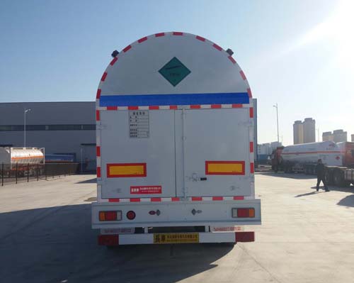 | 备注 | 罐体有效容积为29.6立方米,罐体外形尺寸(mm):φ2258×12030,内胆尺寸(mm):φ1858×11630;介质名称为液态二氧化碳;单位容积充装质量为900千克/立方米.罐体外有厚度为200mm的保温层.ABS系统生产厂家为广州瑞立科密汽车电子股份有限公司,型号为CM2XL-4S/2M;选装ABS系统生产厂家为浙江万安科技股份有限公司,型号为VIE-TABSⅡ(4S/2M),选装ABS系统生产厂家为克诺尔商用车系统企业管理(上海)有限公司,型号为K068353XXX;侧防护所用材料为铝合金,与车架螺栓连接.后防护所用材料为Q235,与车架焊接连接.后部防护装置的断面尺寸为(mm):140×60或140×90,离地高度为450mm.危险货物类项号为第2.2项.采用适用于牵引危险品运输半挂车的牵引车.危险货物运输车辆的车辆类型为AT型车辆.选装后部标识位置. | ||