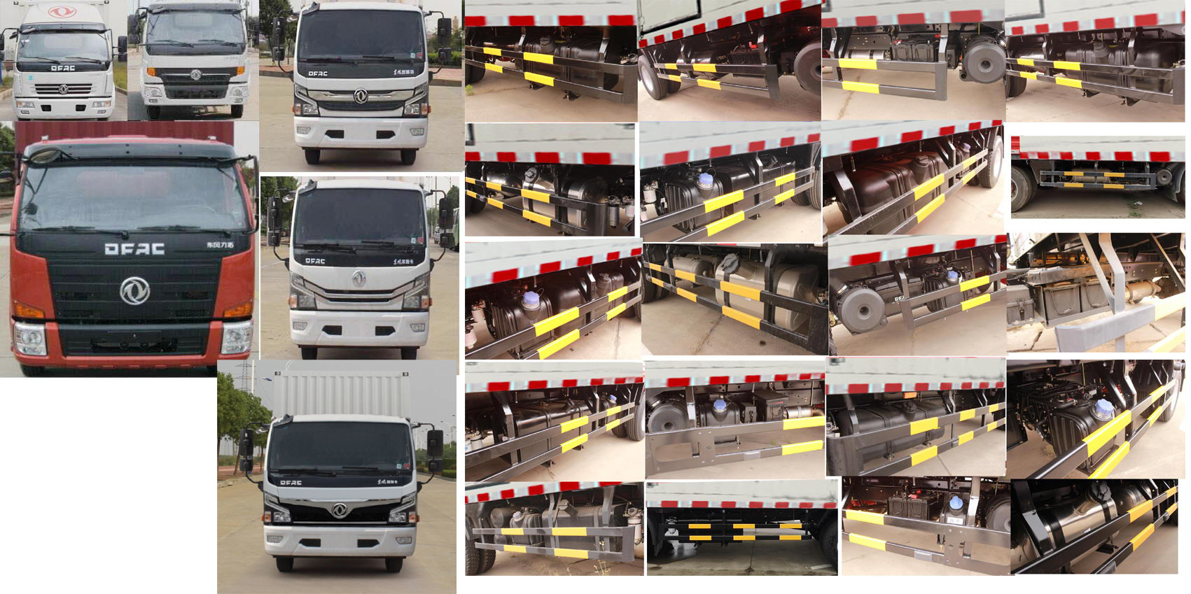 | 备注 | 随底盘选装前面罩,前保险杠,前组合灯具.ABS型号:ABS/ASR-24V-4S/4M,ABS型号厂家:襄阳东风隆诚机械有限责任公司.侧面及后下部防护装置材料为Q235,与车架采用螺栓连接,后下部防护装置断面尺寸(mm):100×50,离地尺寸450mm.装配ISF3.8s5141,YC4S140-50和YN38CRE1,YC4S150-50,ISF3.8s5154,CY4SK251,NGD3.0-CS5D,YC4S170-50,ISF3.8s5168,CY4SK151发动机的油耗均为:12.3L/100km.车厢顶部封闭不可开启.选装导流罩,液压尾板和侧开门.侧门可为单开门或双开门.厢体材质可为瓦楞板或铁平板随底盘选装燃油箱,电瓶,尿素罐,储气筒左右安装位置.随底盘选装前盘式制动器,选装新造型前面罩和前组合灯具,前雾灯为选装件.选装液压尾板时收起状态的水平长度为230mm,液压尾板质量为350kg.选装液压尾板时,后防护安装在尾板支架上,螺栓连接,后防护与尾板联动.随底盘选装后视镜 | ||