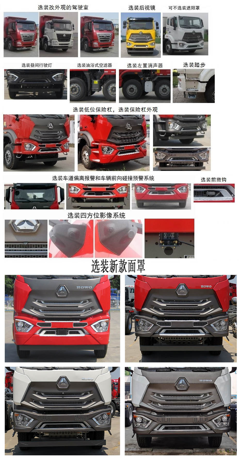 | 备注 | 该车可选装普通或半高顶驾驶室。选装新款面罩。选装改外观的新款驾驶室。选装昼间行驶灯。选装后视镜。选装低位保险杠。选装保险杠外观。选装前拖钩。选装车道偏离报警和车辆前向碰撞预警系统。选装四方位影像系统。可不选装遮阳罩。车长与轴距,箱长,后悬参数对应关系如下:8635/1800+3000+1350/5600/935;8635/1800+2975+1400/5600/910;8800/1800+3000+1350/5800/1100;8800/1800+2975+1400/5800/1075;9000/1800+3000+1350/6000/1300;9000/1800+2975+1400/6000/1275;9360/1800+3000+1350/5600或5800或6000或6200或6500/1660;9360/1800+2975+1400/5600或5800或6000或6200或6500/1635;9560/1800+3000+1350/6800/1860;9560/1800+2975+1400/6800/1835。整备质量与额定载质量、载质量利用系数一一对应。货箱自卸方式为后卸。该车可选装不同的货箱结构。选装U型货厢。选装多种环保顶盖结构。选装篷布盖。该车选装MC07.31-50、MC07.34-50、MC07.35-50、MC07.34-52、MC07H.29-50、MC07H.32-50、MC07H.35-50发动机对应的油耗申报值均为40.5L/100km。侧面防护装置所用材料材质:Q235A,连接方式为螺栓连接。后部防护装置所用材料材质:Q235A,连接方式为螺栓连接+焊接,断面尺寸为120×120mm,离地高度为480mm。该车可选装油浴式空滤器。该车可选装左置消声器。ABS系统型号为446 004 6300,ABS生产企业为威伯科汽车控制系统(中国)有限公司。安装具有卫星定位功能的行驶记录仪。选装ETC车载装置。选装新款面罩。 | ||