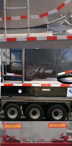 | 备注 | 罐体有效容积:39.3立方米;运输介质为:润滑油;密度为(单位:千克/立方米):900;罐体为双层保温结构,保温层厚度50mm;罐体外形尺寸(mm):10150×2490×2260(罐体为鹅颈式,前端高为2110);ABS系统生产厂家为广州市科密汽车制动技术开发有限公司,型号为CM2XL-4S/2K(4S/2M);选装ABS系统生产厂家为浙江万安科技股份有限公司,型号为VIE-TABSⅡ(4S/2M);选装ABS系统生产厂家为广州市西合汽车电子装备有限公司,型号为XH-GQ4S2M-E01.侧防护所用材料材质为铝合金,与车架螺栓连接,后防护所用材料材质为铝合金,与车架螺栓连接,后部防护装置的断面尺寸为(mm):140×60或140×90,离地高度为500mm. 外保温皮可选用铝合金,镀锌板,彩涂板,玻璃钢;保温方式可用铆钉铆接,可用保温带绑扎.顶部可为挡水槽式,也可为走台式. 选装顶部活动围栏,爬梯前置及接线盒位置,后尾部标志板位置. 该车罐体及车架均为铝合金结构. | ||