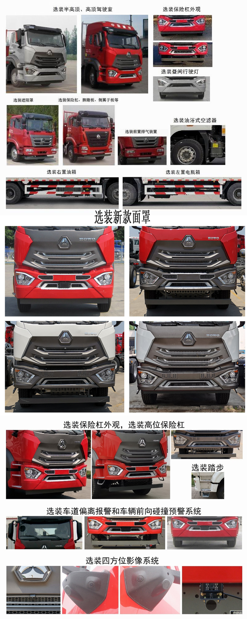 | 备注 | 该车装普通驾驶室时,整车高度为2960mm;也可选装前保险杠,脚踏板,侧翼子板,整车高度为3080mm。选装改外观的新款驾驶室,半高顶驾驶室对应的高度为3100mm,高顶驾驶室对应的高度为3620mm。选装后视镜。选装昼间行驶灯。选装保险杠外观。选装新款面罩。选装高位保险杠。选装踏步。选装四方位影像系统。选装车道偏离报警和车辆前向碰撞预警系统。可不选装遮阳罩。选装右置油箱。选装左置电瓶箱。车长与前悬、轴距、后悬、货箱内长尺寸对应关系如下(单位:mm):8050=1350+4500+2200,货箱内长5750;8050=1550+4500+2000,货箱内长5750;8520=1350+4700+2470,货箱内长6200;8520=1550+4700+2270,货箱内长6200;8995=1350+5100+2545,货箱内长6750;8995=1550+5100+2345,货箱内长6750。整备质量为7170kg时,额定载质量为8700kg(驾驶室准乘2人)或8635kg(驾驶室准乘3人),载质量利用系数为1.23;整备质量为7880kg时,额定载质量为7990kg(驾驶室准乘2人)或7925kg(驾驶室准乘3人),载质量利用系数为1.03。可选装货箱外观结构。侧面防护装置所用材料材质为Q235A,连接方式为螺栓连接;后部防护装置所用材料材质为Q235A,连接方式为螺栓连接+焊接,断面尺寸为120mm×120mm,离地高度为480mm。ABS系统型号为446 004 6300,生产企业为威伯科汽车控制系统(中国)有限公司。该车可选装前置排气结构。该车可选装限速装置,限速79km/h或89km/h。安装具有卫星定位功能的行驶记录仪。该车选装MC05.16-50、MC05.18-50、MC05.21-50、MC07.24-50发动机对应的油耗申报值均为23.5L/100km。选装ETC车载装置。 | ||
