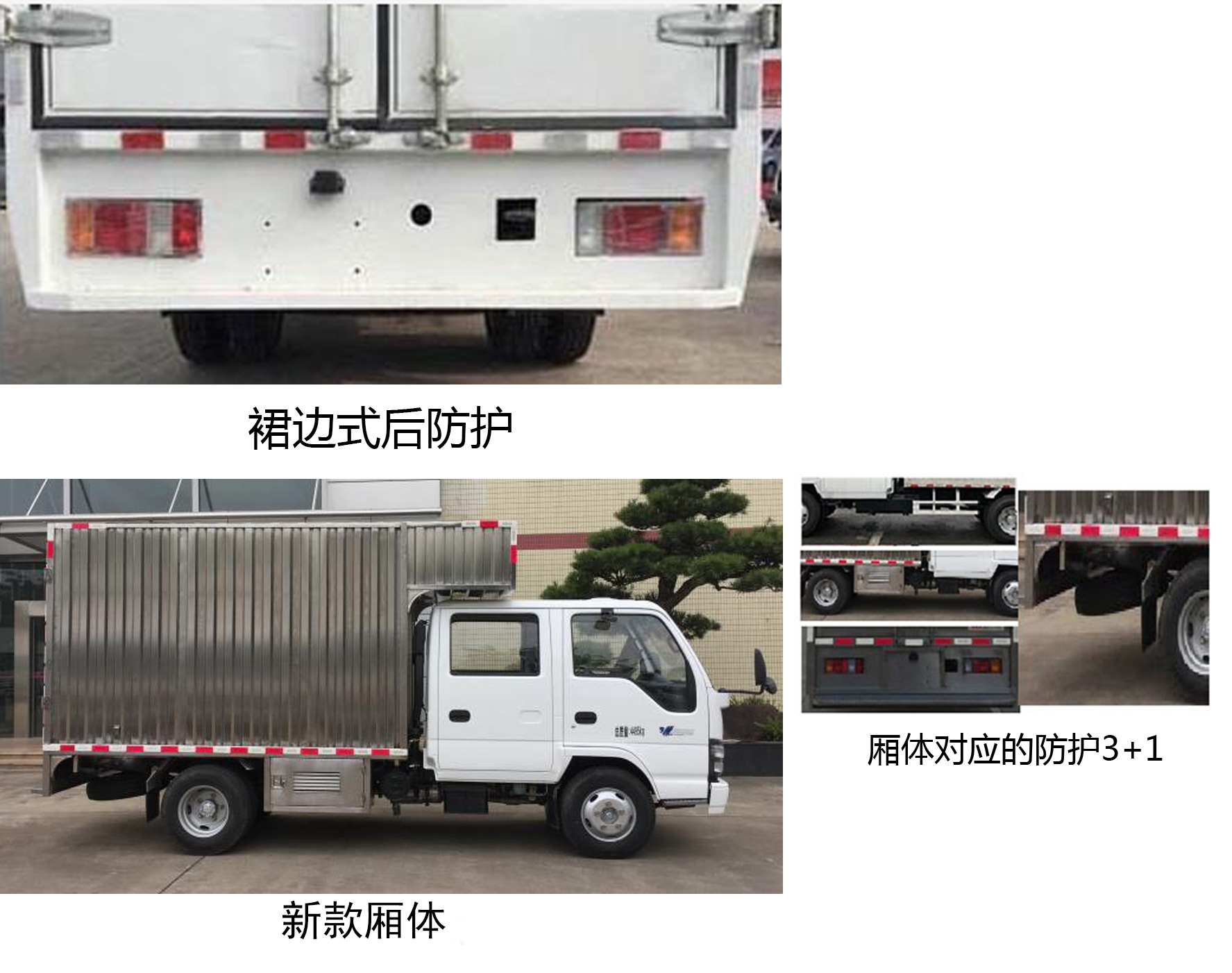 | 备注 | 1、发动机净功率为94kW;2、该厢式货车顶部封闭,不可开启;3、该车允许装单侧开门,允许装导流罩和允许不装侧开门,不装侧开门时整车宽度为1880mm,装侧开门时整车宽度为1910mm。4、侧防护材料:钢板 Q235,连接方式:用螺栓连接在车厢横梁上;后防护材料:钢板Q235,板厚3.2mm,连接方式:后防护支架以螺栓连接在车架纵梁尾端,后防护断面尺寸:143×55(mm),离地高度:480mm;5、该车装ABS,ABS及其控制器型号为:APG3550500A4,生产厂家为:浙江亚太机电股份有限公司;6、该车允许装裙边式后防护,离地高度为495mm;7、扩展一种厢体;8、该车型可选装ETC车载装置。 | ||