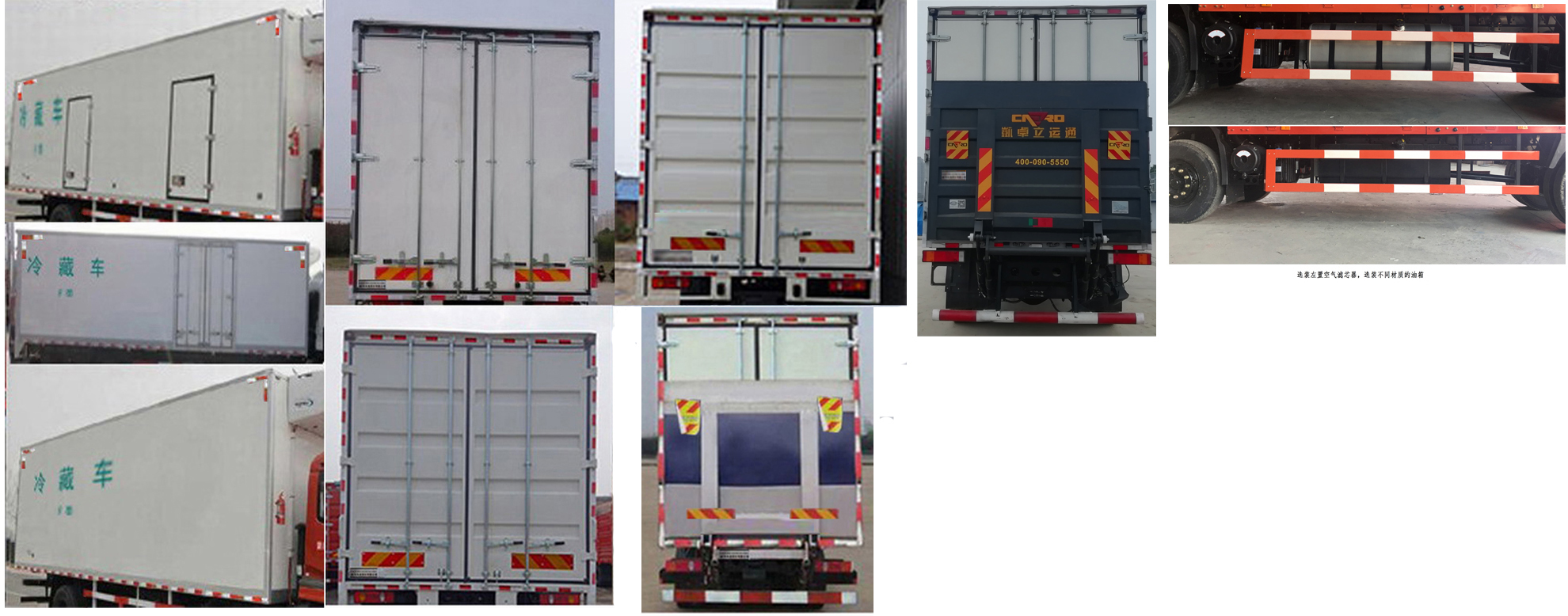 | 备注 | 选装侧窗,选装前雾灯,驾驶室顶部选装导流罩,随底盘选装高顶驾驶室,前遮阳板为选装件,选装引起管左置,选装储气筒位置,选装左置空气滤芯器,选装不同材质的油箱,选装不同结构的车门裙板,选装无车门裙板,选装与车身颜色相同的前保险杠,选装侧转向灯,选装前下视镜支架;可选装其它厂家功率相当的制冷机组;选装尾板,尾板质量为550kg,尾板收起状态时的水平长度为295mm;选装尾板时仅选用断面尺寸Φ121mm的后防护,后防护材质:Q235,连接方式:焊接,离地高度470mm;侧防护:材质Q235,螺栓连接;后下防护:材质Q235,螺栓连接,断面尺寸120×60mm,离地高度460mm;厢体顶部封闭,不可开启,侧面选装开门和不开门;选装液压尾板,尾板收起状态时的水平长度为295mm;安装具有卫星定位功能的行驶记录仪;ABS型号/生产厂家:ABS 8/东科克诺尔商用车制动系统(十堰)有限公司、ABS-E 4S/4M/威伯科汽车控制系统(中国)有限公司;选装限速装置,限速89km/h;发动机和油耗值的对应关系(L/100km):ISD230 50/25.9;DDi50S220-50/25.9;ISD245 50/25.9. | ||