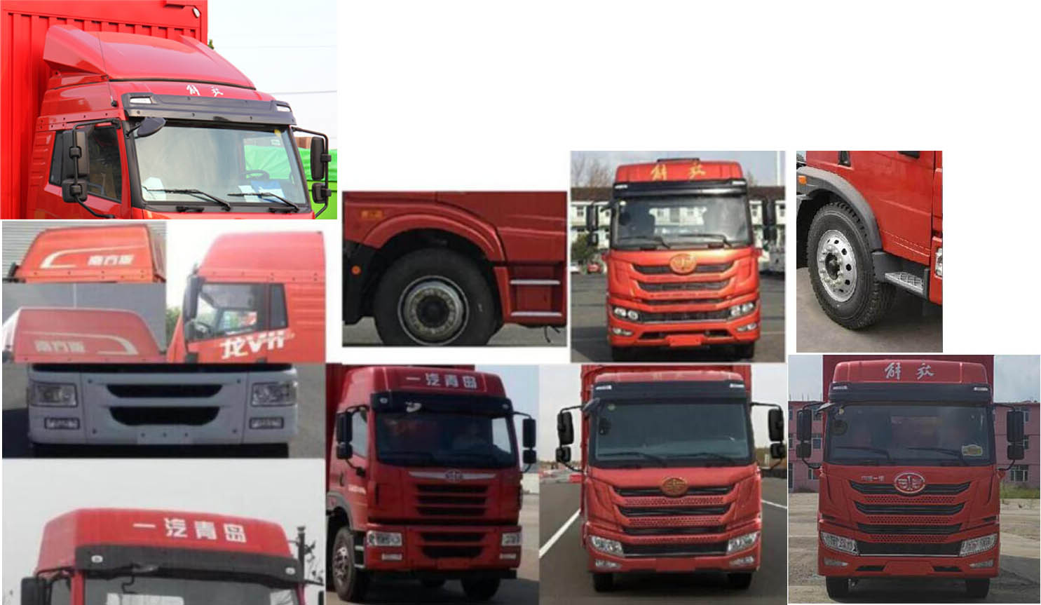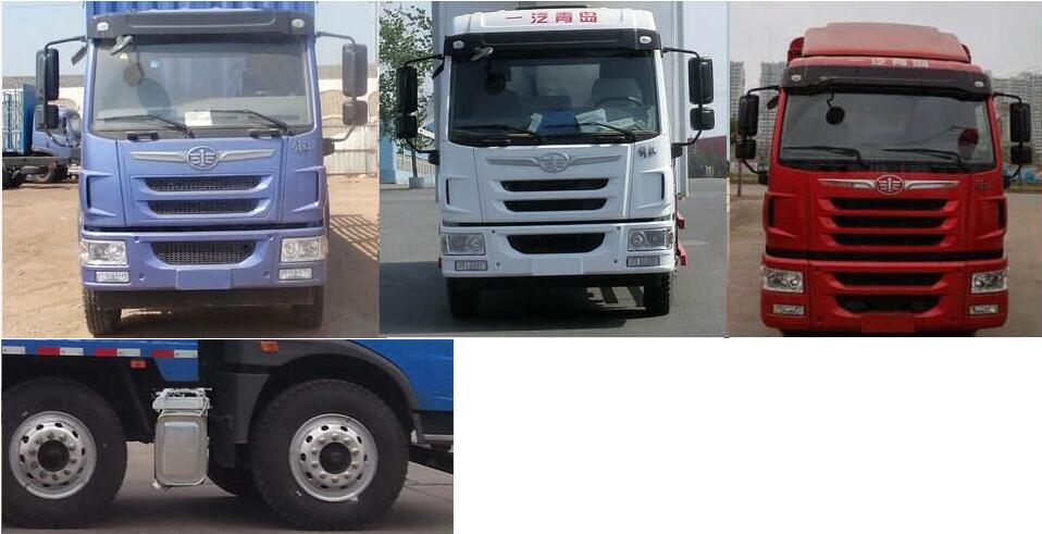 | 备注 | 车厢顶部封闭,不可开启.选装平顶驾驶室.选装半高顶驾驶室.选装新结构的保险杠.选装高顶驾驶室.选装改前围的驾驶室.选装平板货箱.选装单开门,多开门,不开门结构.车厢选装液压尾板.尾板收起状态的水平长度是290mm.侧防护装置材质为R13钢,连接方式为螺栓连接,后下部防护装置的材质为SS400钢,连接方式为螺栓连接,后部防护离地高度330mm,断面尺寸为120×85mm.安装具有卫星定位功能的行驶记录仪.ABS生产厂家/型号:浙江万安科技股份有限公司/VIE ABS-II.油耗值(L/100km)35.3,35.0,35.2对应发动机CA6DH1-22E5,CA6DLD-22E5,CA4DK1-22E5.整车长度(mm)/轴距(mm)/前悬(mm)/后悬(mm)/货厢长度mm/整备质量Kg/载质量Kg/载质量利用系数对应关系为:1.9100/1900+4000/1332/1868/6700/8700/15605,15670/1.81;2.9100/1900+4000/1375/1825/6700/8700/15605,15670/1.81;3.10100/1900+4700/1332/2168/7700/9350/14955,15020/1.62;4.10100/1900+4700/1375/2125/7700/9350/14955,15020/1.62;5.9999/1900+4700/1332/2067/7600/9350/14955,15020/1.62;6.9999/1900+4700/1375/2024/7600/9350/14955,15020/1.62.前轴选装盘式制动器.选装限速装置,限速89km/h.选装改前脸的驾驶室.选装不同的翼子板结构.选装不同结构的后处理器安装位置.尾板质量为550Kg.选装新结构的导流罩. | ||