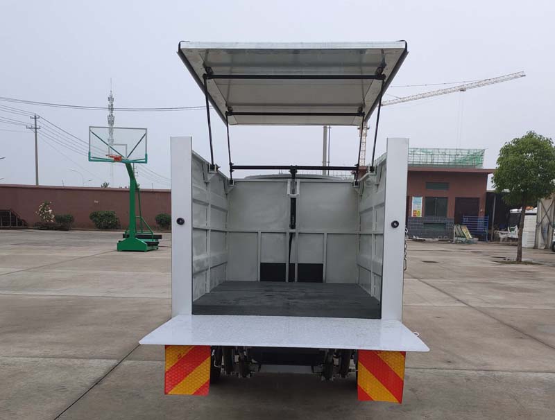| 备注 | 1.蓄电池为磷酸铁锂蓄电池,生产企业江西安驰新能源科技有限公司。驱动电机持续功率15KW。可在全国销售。2.ABS型号CM4YL,生产企业广州瑞立科密汽车电子股份有限公司。3.可选装W3款前围及前部灯具。4.该车主要用于垃圾桶的装卸及运输,专用装置由垃圾箱体,液压升降顶盖,液压尾板等组成。液压尾板收起状态的水平长度150mm,尾板质量为190kg。5.仅选用2400mm轴距 | ||