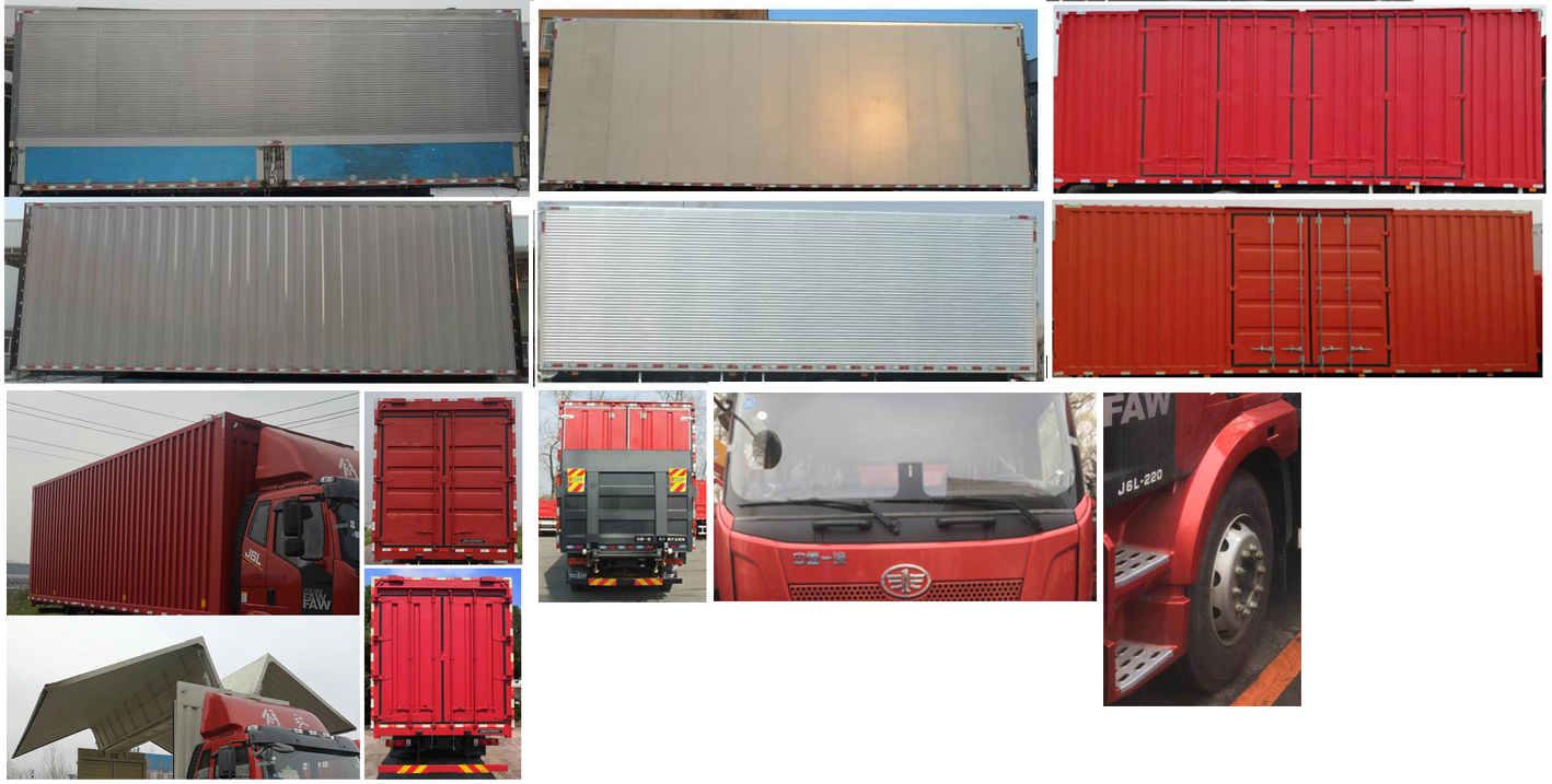 | 备注 | 车厢顶部封闭不可开启,顶板与侧翼板固定连接在一起可开启约90°,瓦楞板式车厢,选装平板式,两截栏板式,波纹板车厢,随底盘选装导流罩,高顶驾驶室,保险杠和脚踏板,前轴选装盘式制动器,选装限速装置,限速89km/h,侧面防护装置的横杆材料为Q235,螺栓连接,后下部防护装置的横梁材料为16MnREL,螺栓连接,断面尺寸120×60mm,离地高度为485mm,ABS系统生产厂家:长春科密汽车制动有限公司,型号:CM4XL,安装具有卫星定位功能的行驶记录仪,油耗申报值与发动机对应关系:37.13(BF6M2012-22E5),31.5(CA4DK1-22E5),37.31(CA6DH1-24E5),36.53(CA6DK1-28E5,CA6DK1-24E5),36.9(CA6DH1-25E51),随底盘增加选装前围,灯具,油箱,选装车厢外观,后部结构及开启方式,选装液压尾板,尾板收起状态的水平长度295mm,尾板质量为550kg,选装侧单开门或双开门车厢,随底盘选装翼子板和一汽标 | ||
