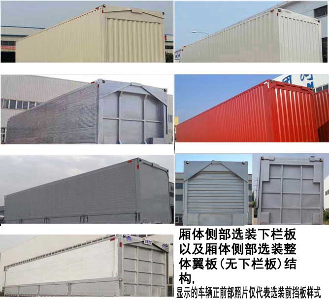 | 备注 | 该车为翼开启式,顶部封闭不可开启,顶板与侧翼板连接,侧翼板可开启;厢体侧部选装下栏板以及厢体侧部选装整体翼板(无下栏板)结构,选装前挡板样式,选装后尾样式及后雾灯形状为圆形样式,选装后牌照板安装位置,当车长(mm)为13500,13000时车辆前端无倒角;选装引起整备质量参数的变化在3%之内;箱板竖瓦楞个数和箱板撑个数不受限制,工具箱位置不受限制.ABS系统厂家为梁山海纳电子科技发展有限公司,型号为HNABS4S/4M;侧后防护装置材料均为Q235B,侧后防护装置与车架连接方式均为焊接,后防护装置断面尺寸为140×55mm,离地高度为440mm. | ||