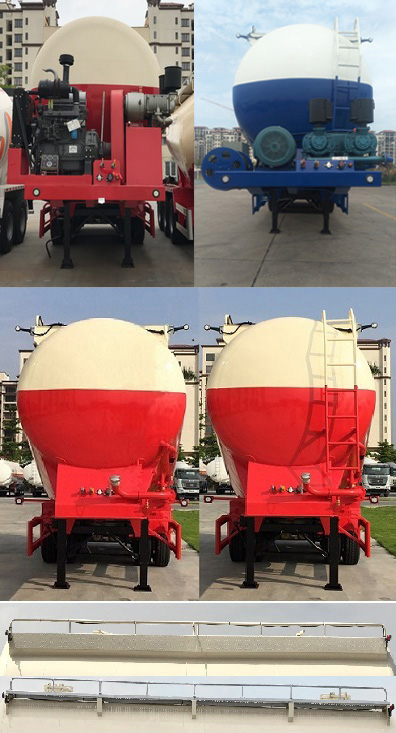 | 备注 | 1.已装侧后反光标识。2.当牵引销中心到后第一轴距离为4800毫米时,罐体尺寸:罐体长度8274毫米,最大截面高度2950毫米,宽度2280毫米,封头直径1950毫米,有效容积27立方米。选装机组平台时,车辆外形尺寸长为9705毫米;不选装机组平台时,车辆外形尺寸长为8885毫米。3.当牵引销中心到后第一轴距离为4600毫米时,罐体尺寸:罐体长度7622毫米,最大截面高度3200毫米,宽度2500毫米,封头直径1900毫米;有效容积27立方米。选装机组平台时,车辆外形尺寸长为9505毫米;不选装机组平台和选装后置空压机机组时,车辆外形尺寸长为8685毫米。4.运输介质:油田固井专用水泥,密度:1200千克/立方米。选装机组平台时,额定载质量为31650千克,整备质量为8350千克;不选装机组平台时,额定载质量为32400千克,整备质量为7600千克。5.选装机组双动力平台,选装机组电机平台,选装后置空压机机组,选装右侧进气管路,选装前爬梯,选装后爬梯,选装顶部封闭或开放式走道板结构,选装挡泥板型式,选装侧面管线结构型式,选装软管吊架,选装大梁样式。6.ABS厂家:威伯科汽车控制系统(中国)有限公司,型号:4005000880;广州市西合汽车电子装备有限公司,型号:XH-GQ4S2M-E01;浙江万安科技股份有限公司,型号:VIE-TABS II。7.侧防护装置材质Q235,连接方式:螺栓连接;后下部防护装置材质Q235,连接方式:螺栓连接,断面尺寸为150X100毫米,离地高度470毫米。8.顶部封闭不可开槽,后部不可开启。 | ||