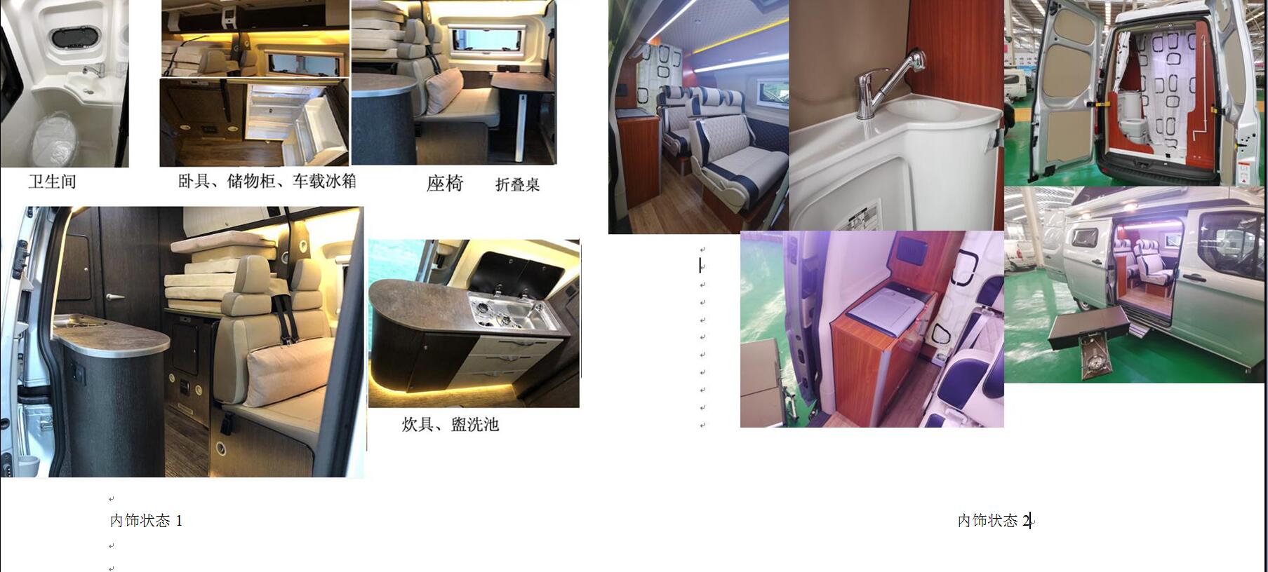 | 备注 | 车内配备桌椅、卫生间、储物柜、卧具、饮具等设施。选装车载冰箱、盥洗池等。随原车选装轮辋装饰板,尾部标识。可不选装侧拉门踏板、遮阳棚、太阳能板。2032mm为不选装双侧拉门踏板时的宽度;5400mm为选装前后大包围时的车辆长度,对应前/后悬为1034mm/1066mm;2407mm为顶部不装太阳能板时的高度。ABS系统控制器型号:EV5051;ABS生产厂:博世汽车部件(苏州)有限公司。发动机最大净功率:147kW。 | ||