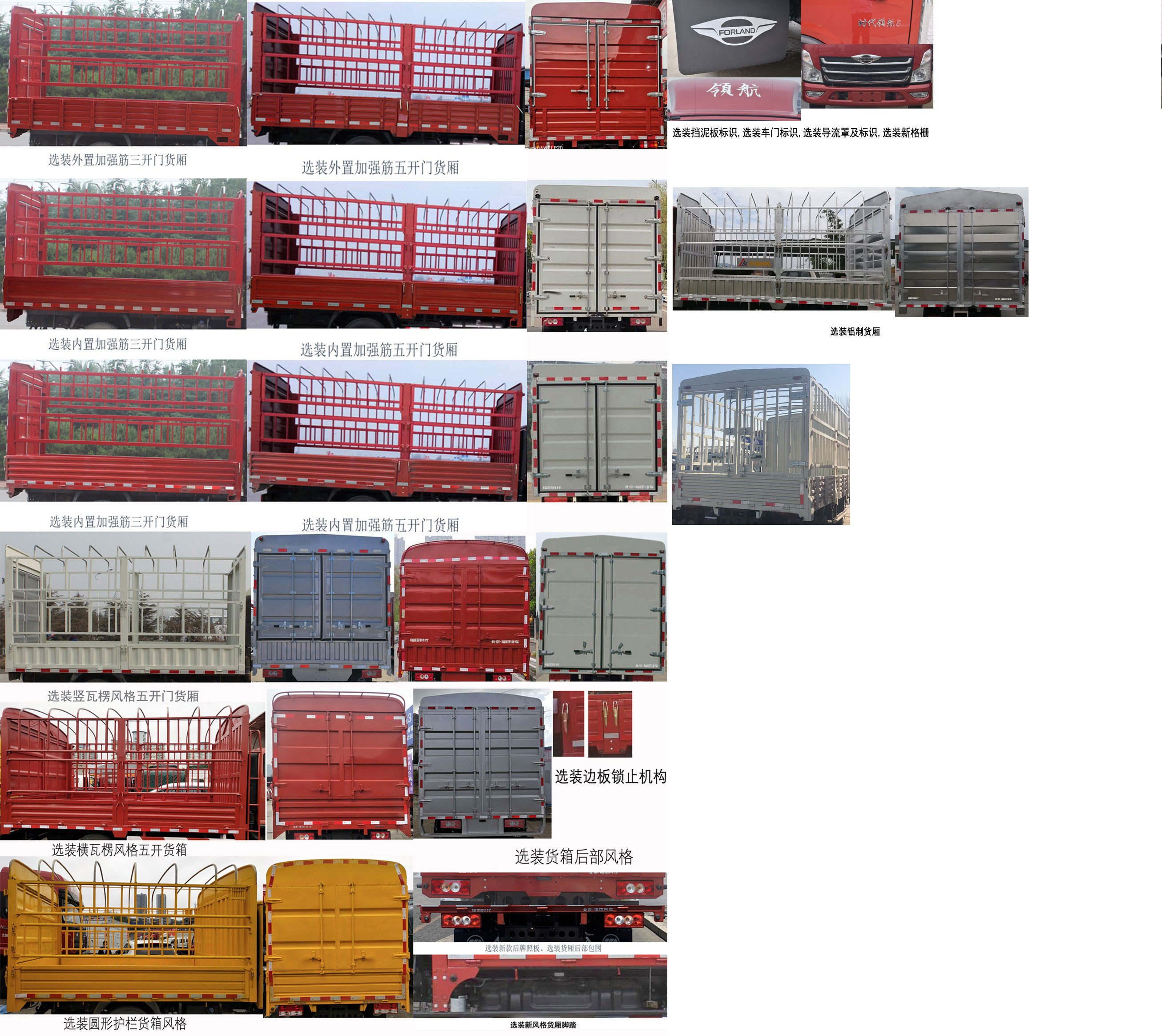 | 备注 | 货厢底板到仓栅顶部高度为2100mm,2300mm,侧面防护装置的所用材料材质为冷板B-2.0-GB/T708,后下部防护装置的所用材料材质为异型管20-D-1-100×50×3,支架材料为热板A-6/Q235A,连接方式为螺栓连接,位置不可调整,后部防护装置的断面尺寸为100×50mm,离地高度为400mm.ABS型号为CM4XL-4S/4M,生产厂家为广州瑞立科密汽车电子股份有限公司,发动机WP2.3NQ130E61的油耗值为10.8L/100km.选装新前围覆盖部件,选装车门字样,选装后视镜底座造型,选装后视镜架弯度,选装内置加强筋三开门货厢,选装内置加强筋五开门货厢,选装外置加强筋三开门货厢,选装外置加强筋五开门货厢.选装前格栅风格.选装后部三开门照片.选装前部logo.选装新风格货箱,选装铝制风格货箱.选装挡泥板标识,选装车门标识,选装导流罩及标识,选装新格栅. | ||