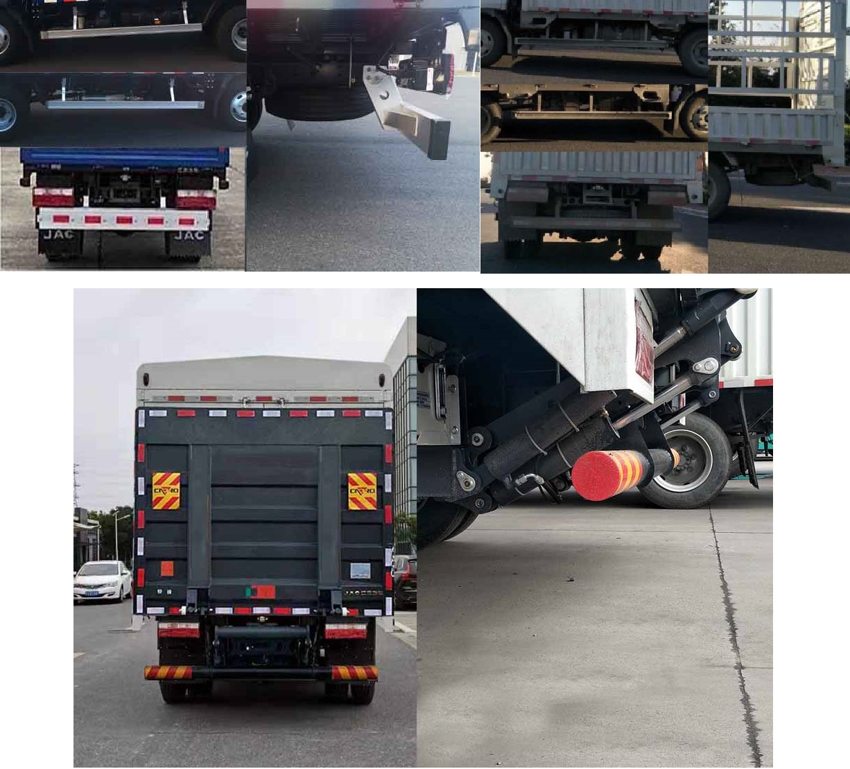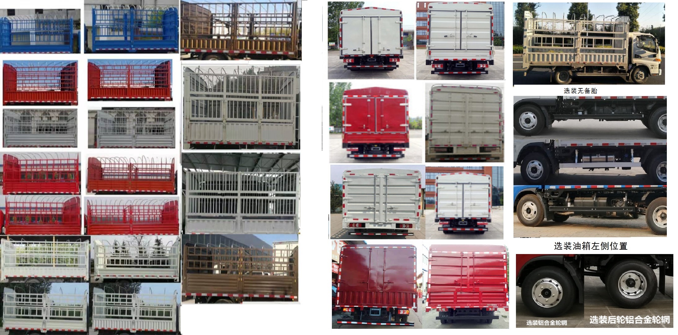 | 备注 | 1.货箱底板到仓栅顶部高度为1700mm/2000mm/2200mm/2300;2.发动机D30TCIF2,D30TCIF1对应的油耗申报值(L/100km)为11.4,11.4;3.ABS型号/厂家为VIE ABS-Ⅱ/浙江万安科技股份有限公司,选装ABS,ABS型号/厂家为:CM4XL-4S/4M/广州瑞立科密汽车电子股份有限公司,ABS8/克诺尔商用车系统企业管理(上海)有限公司;4.侧面及后下部防护装置材料为Q235A,连接方式为螺栓连接,后部防护装置断面尺寸(长×宽):120mm×60mm,离地高度为490mm,选装侧后防护,侧面及后下部防护装置材料为Q235,连接方式为螺栓连接,后部防护装置断面尺寸(长×宽):120mm×60mm,离地高度为440mm,选装铝合金防护,侧面及后下部防护装置材料为Al-6061,连接方式为螺栓连接,后部防护装置断面尺寸(长×宽):150mm×55mm,离地高度为440mm;5.选装不同样式的导流罩;6.选装货厢风格,选装后开门的样式;7.选装系固装置;8.选装后部灯具;9.选选装无备胎,选装铝合金轮辋,选装油箱左侧状态;10.可选装液压尾板,尾板收起状态的水平长度为280mm,当选装液压尾板时后部防护装置材料为510L,后部防护装置的断面尺寸(圆形)为:Φ115mm,离地高度为455/480mm,后防护和液压尾板联动,避免尾板工作时产生干涉,尾板质量为350Kg; | ||
