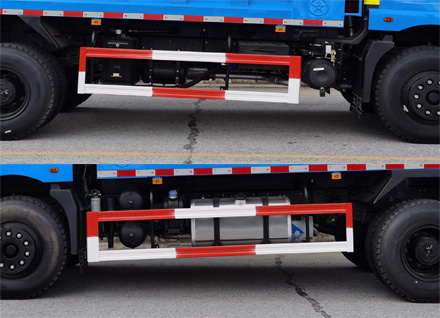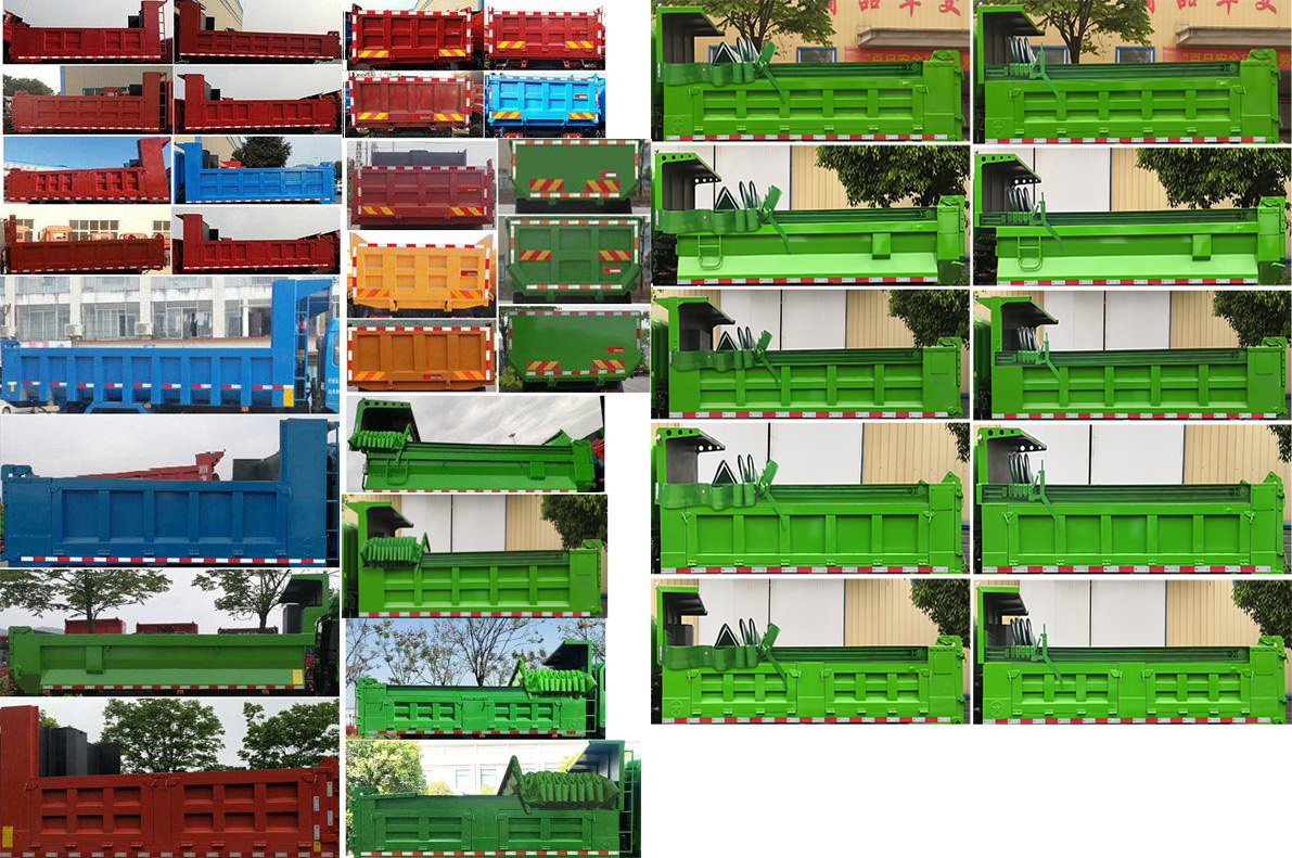 | 备注 | 自卸方式为后卸,选装货箱侧面及后部结构样式,选装环保盖,选装货箱横竖筋数量,随底盘选装后视镜等新风格,随底盘选装不同驾驶面板、遮阳罩、保险杠,选装燃油箱、尿素箱及电瓶框安装位置.侧、后防护装置材料均为Q235,侧防护螺栓连接;后防护焊接连接,后防护离地高度为485mm,截面高度和厚度为120mm×60mm.发动机YC6JA240-50油耗申报值(L/100km)为30.9.ABS控制器型号:VIEABS-Ⅱ,厂家:浙江万安科技股份有限公司;ABS控制器型号:3550X-1010,厂家:东科克诺尔商用车制动系统(十堰)有限公司;ABS型号:CM4XL-4S/4M,厂家:广州瑞立科密汽车电子股份有限公司.安装具有卫星定位功能的行驶记录仪.外形尺寸对应关系(外长=前悬+轴距+后悬)为:7450=1410+4200+1840;7950=1410+4500+2040. | ||
