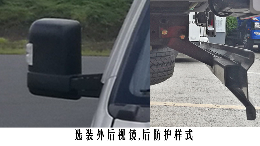 | 备注 | 1.选装部件:导流罩,号牌板,外后视镜,MP5,倒车可视,电动门窗,中控锁,空调.2.ABS控制系统型号:YF8;ABS控制系统生产企业:武汉元丰汽车电控系统有限公司;ABS系统控制方式:四通道式.3.4A2-88C55发动机最大净功率为62kW,对应油耗值为13.0L/100km.4.防护栏材料为Q235,采用螺栓连接,后防装置下边缘的最大离地高度为:500mm,断面尺寸:140mm×20mm,140mm×58mm. | ||