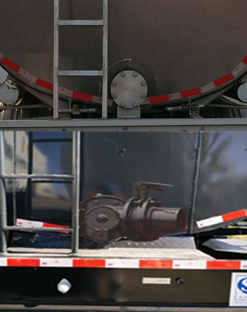 | 备注 | 罐体有效容积:42.8立方米;允许运输介质的最大密度为820千克/立方米;罐体为双层保温结构,保温层厚度50mm;罐体外形尺寸(mm):11300×2490×2250(罐体为鹅颈式,前端高为2100);ABS系统生产厂家为广州市科密汽车制动技术开发有限公司,型号为CM2XL-4S/2K(4S/2M);选装ABS系统生产厂家为浙江万安科技股份有限公司,型号为VIE-TABSⅡ(4S/2M);选装ABS系统生产厂家为广州市西合汽车电子装备有限公司,型号为XH-GQ4S2M-E01.该车罐体及车架均为铝合金结构.侧防护所用材料材质为铝合金,与车架螺栓连接,后防护所用材料材质为铝合金,与车架螺栓连接,后部防护装置的断面尺寸(单位:mm)为140×60或140×90,离地高度为500mm.选装保温蒙皮形式及走台形式.选装后封头清料口及阀门样式,后尾部标志板位置,罐顶活动围栏,爬梯前置. | ||