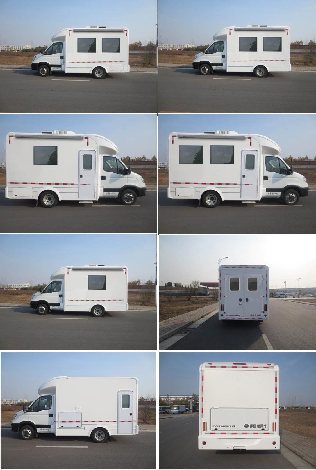 | 备注 | 1.该车装有医疗操作台、医疗照明灯、紫外线消毒灯等医疗专用设施,用于移动医疗诊断;2.车内可选装铅房、X线机、医用检查床;可选装不同内饰布局;选装不同医疗设施时,对应不同整备质量;选装不同的配置可引起整备质量变化;选装高配时,整备质量为4290kg;选装中配时,整备质量为4200kg;选装低配时,整备质量为3930kg;3.整车高度对应关系:安装顶风窗高度为2950mm;安装防水音柱高度3050mm;选装不同顶置市电空调的高度分别为2999mm,3099mm,3280mm;4.安装单侧遮阳篷时整车宽度为2430mm;安装双侧遮阳篷时整车宽度为2500mm;5.可选装防水音柱、倒车监视等;可选装不同型式侧舱门;6.可选装后双开门,可取消左侧后门,可取消右侧后门;可选装左侧扩展舱,右侧扩展舱或后部扩展舱、后部舱门;可选装封闭窗或不同型式推拉窗;7.ABS系统控制器型号:BOSCH ABS8,ABS系统控制器生产企业:博世汽车部件(苏州)有限公司;选装ESP;8.该车以裙边结构作为侧、后防护,侧防护下边缘离地高度335mm,后防护下边缘离地高度380mm;9.发动机最大净功率105kW(F1CE34818); | ||