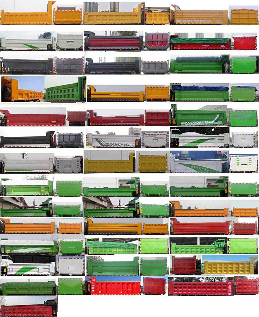 | 备注 | 1.随底盘选装高顶/平顶驾驶室,选装驾驶面罩,侧窗,保险杠,前后组合灯,后视镜,油箱,选装多种货箱箱板外观结构,选装多种不同结构的环保顶盖,选装前下视镜总成;2.货箱自卸方式为后卸;3.侧防护材料为Q345,侧防护连接方式:螺栓连接,选装侧防护支架形状;后防护材料为Q345,后防护连接方式:螺栓连接,后防护离地高度为490mm,截面尺寸为60×140mm;4.安装具有卫星定位功能的行驶记录仪;5.ABS型号:ABS/ASR-24V-4S/4M,控制器型号: ABS/ASR-24V-4S/4M,厂家: 东科克诺尔商用车制动系统(十堰)有限公司;ABS型号:CM4XL-4S/4K(4S/4M),控制器型号:CM4XL-4S/4M,厂家:广州瑞立科密汽车电子股份有限公司;6.油耗值:SC12E390Q5,SC12E430Q5,SC12E460Q5均对应45.1L/100km;7.仅选用轴距1800+3300+1400.8.车长/轴距/货箱长/后悬对应关系为:9735mm/1800+3300+1400mm/6800mm/1800mm;9935mm/1800+3300+1400mm/7000mm/2000mm;10135mm/1800+3300+1400mm/7200mm/2200mm; | ||