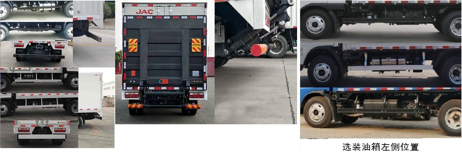 | 备注 | 1.车厢顶部封闭不可开启,选装不带导流罩,2.选装右侧不开门货厢,3.发动机ISF3.8s5141,D30TCIE1,HFC4DE1-1D,ISF3.8s5154对应的油耗申报值(L/100km)为12.2,12.2,12.0,12.0,4.侧面及后下部防护装置材料为Q235,连接方式为螺栓连接,后部防护装置断面尺寸(长×宽):120mm×60mm离地高度为490/430mm,5.选装不同样式的侧后防护,其选装的侧面及后下部防护装置材料为Al-6061,连接方式为螺栓连接,选装的后部防护装置断面尺寸(长×宽):150mm×55mm离地高度为490/430mm.同时选装不同样式的单杆侧防护,其选装的侧防护装置材料为Q235,连接方式为螺栓连接,7.可选装液压尾板,尾板收起状态的水平长度为280mm,当选装液压尾板时后部防护装置材料为510L,后部防护装置的断面尺寸(圆形)为:Φ115mm,离地高度为455/480mm,后防护和液压尾板联动,避免尾板工作时产生干涉,尾板质量为350Kg,,5.ABS控制器型号/厂家:广州科密汽车电子控制技术股份有限公司/CM4XL-4S/4M,6.选装改前围面板,进气格栅,前保险杠,组合灯具,前雾灯,后视镜的驾驶室,7.选装前保杠;随底盘选装铝合金轮毂;选装无备胎;选装不同厂家但制冷量相同的冷藏机组;选装不同样式的导流罩 | ||