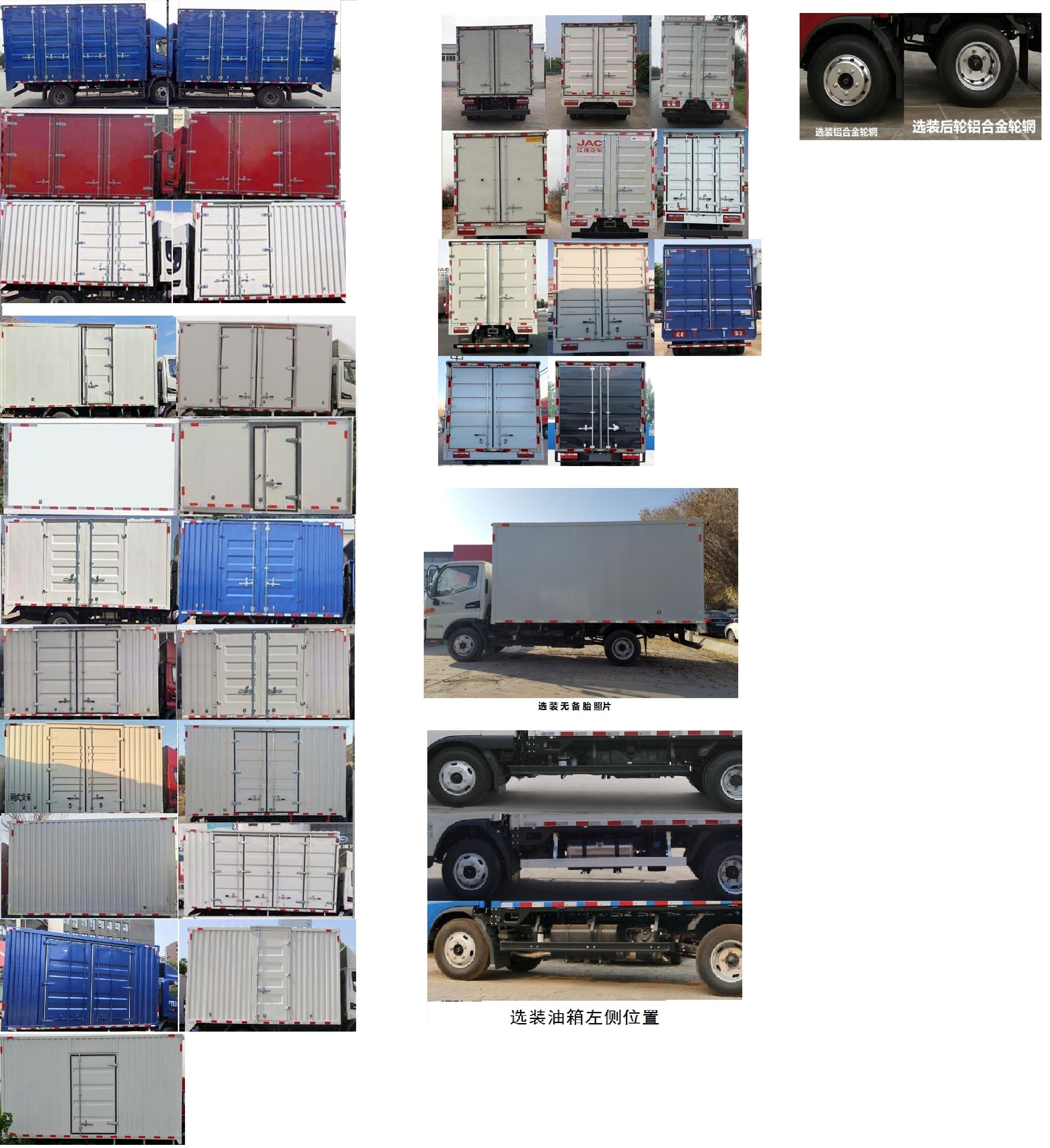 | 备注 | 1.车厢顶部封闭不可开启,选装不同样式的导流罩;2.选装右侧不开门,单开门,双开门,和四开门货箱,货厢材料可选用瓦楞板,铁平板,铝平板,彩钢板;3.发动机D30TCIF2,D30TCIF1对应的油耗申报值(L/100km)为11.4,11.4;4.ABS型号/厂家为VIE ABS-Ⅱ/浙江万安科技股份有限公司,选装ABS,ABS型号/厂家为:CM4XL-4S/4M/广州瑞立科密汽车电子股份有限公司,ABS8/克诺尔商用车系统企业管理(上海)有限公司;;5.侧面及后下部防护装置材料为Q235A,连接方式为螺栓连接,后部防护装置断面尺寸(长×宽):120mm×60mm,离地高度为490mm,选装侧后防护,侧面及后下部防护装置材料为Q235,连接方式为螺栓连接,后部防护装置断面尺寸(长×宽):120mm×60mm,离地高度为440mm,选装铝合金防护,侧面及后下部防护装置材料为Al-6061,连接方式为螺栓连接,后部防护装置断面尺寸(长×宽):150mm×55mm,离地高度为440mm,6.选装后部灯具;7.选装无备胎,选装铝合金轮辋,选装油箱左侧状态,选装竹胶板,蜂窝板,铝花纹板,钢花纹板货厢底板材质;8.可选装液压尾板,尾板收起状态的水平长度为280mm,当选装液压尾板时后部防护装置材料为510L,后部防护装置的断面尺寸(圆形)为:Φ115mm,离地高度为455/480mm,后防护和液压尾板联动,避免尾板工作时产生干涉,尾板质量为350Kg; | ||