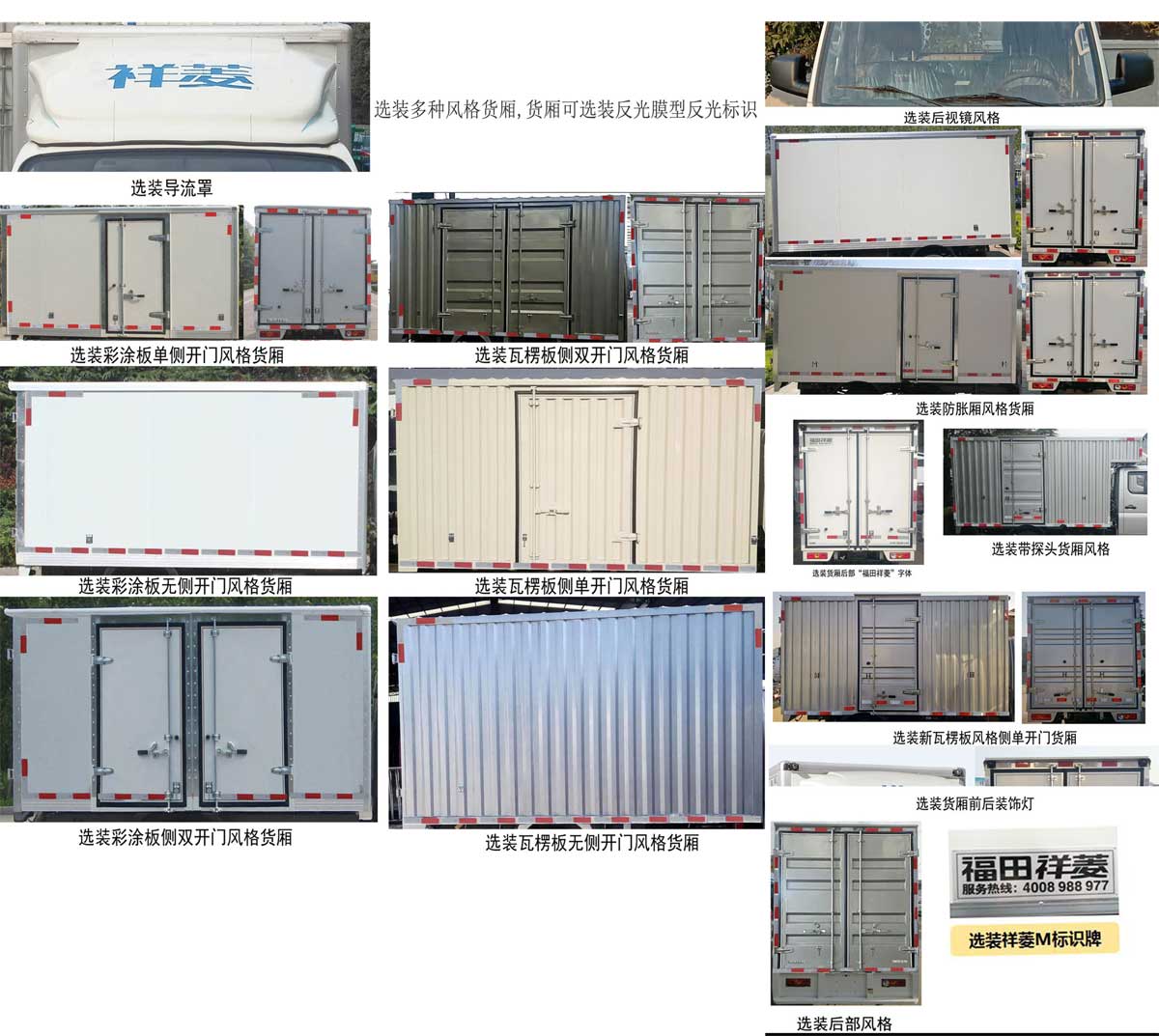 | 备注 | 货厢顶部封闭不可开启,可选装黑色装饰条,可不装黑色装饰条,可选装前雾灯及昼间行驶灯,可不装前雾灯及昼间行驶灯,可选装导流罩,可选装彩涂板侧单开门风格货厢,可选装彩涂板无侧开门风格货厢,可选装彩涂板侧双开门风格货厢,可选装瓦楞板侧双开门风格货厢,可选装瓦楞板单侧开门风格货厢,可选装瓦楞板无侧开门风格货厢,可选装反光膜型反光标识.发动机DAM15KR,DAM16KR对应的油耗值分别为7.4L/100km,7.4L/100km,分别对应最高车速100km/h,110km/h.ABS系统控制方式是双参数控制,ABS系统控制器型号是YF9,ABS系统控制器生产企业是武汉元丰汽车电控系统有限公司.选装新款后视镜风格.选装高位进气管.选装防胀厢风格货厢,选装带探头货厢风格,货厢后部选装"福田祥菱"字样,选装新瓦楞板风格侧单开门货厢,选装货箱前后装饰灯,选装货箱后部风格.选装货厢风格,选装"福田祥菱"标识牌. | ||