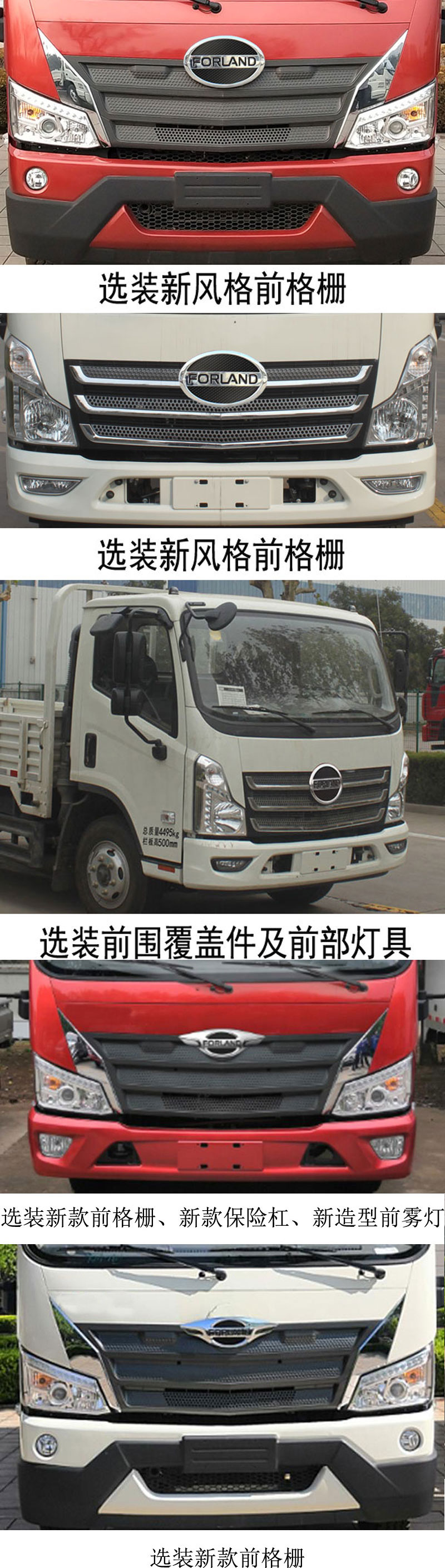 | 备注 | 可选装三开门货箱风格,可选装五开门货箱风格;侧防护的材料为冷板B-2.0,后下部防护装置材料为20-D-1-100×50×3,均为螺栓连接,后下防护装置截面尺寸100mm×50mm,后防护的离地高度为495mm;ABS系统控制器型号为CM4XL-4S/4M,ABS系统控制器生产企业为广州瑞立科密汽车电子股份有限公司;发动机WP4.1NQ170E61,WP4.1NQ190E61,YCS04200-68对应的油耗值为12.0,11.3,11.4L/100km.选装车身覆盖部件及前部组合灯具.选装新风格前格栅.选装前部logo.选装新前格栅及新logo.选装新款前格栅,选装新款保险杠,选装新造型前雾灯.选装车门外部标识.选装挡泥板标识. | ||