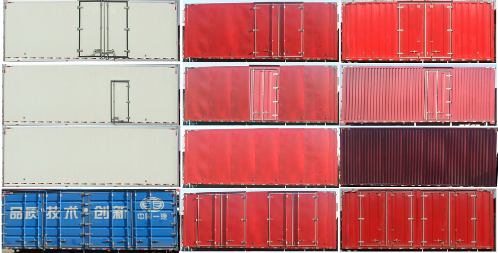 | 备注 | 车厢顶部封闭,不可开启,选装单开门,双开门,不开门,选装平板,彩板,瓦楞板车厢,选装车厢侧面两对门,长度尺寸对应关系:9960=1400+5600+2960(7700mm厢长),9960=1400+5800+2760(7700mm厢长),10060=1400+5800+2860(7800mm厢长),10360=1400+5800+3160(8000mm厢长),10360=1400+6100+2860(8000mm厢长),10460=1400+6100+2960(8200厢长),10960=1400+6500+3060(8700厢长),11960=1400+7100+3460(9700mm厢长),12000=1400+7100+3500(10000mm厢长,单排驾驶室),驾驶室准乘人数3人对应额定载质量9900kg,9305kg,驾驶室准乘人数2人对应额定载质量9965kg,9370kg,侧面防护装置的横杆及纵梁材料为Q235,螺栓连接,后下部防护装置的横梁及纵梁材料为16MnREL,螺栓连接,断面尺寸120×60mm,离地高度为450mm,ABS防抱死制动系统生产厂家,长春瑞立科密汽车电子有限公司,型号:CM4XL,油耗申报值与发动机对应关系:26.3(CA4DK1-22E6,CA4DK1-18E6),26.5(CA6DH1-24E6),25.5(CA4DH1-18E6),26.7(CA6DH1-26E6,CA6DK1-26E6),选装无遮阳罩,随底盘选装导流罩,选装高顶驾驶室,选装单排驾驶室,选装前围和灯具,选装液压尾板,尾板收起状态的水平长度295mm,尾板质量为550kg,安装具有卫星定位功能的行驶记录仪,随底盘前轴选装盘式制动器,选装限速装置,限速89km/h,随底盘选装左置油箱和翼子板,选装后部锁杆内置车厢 | ||