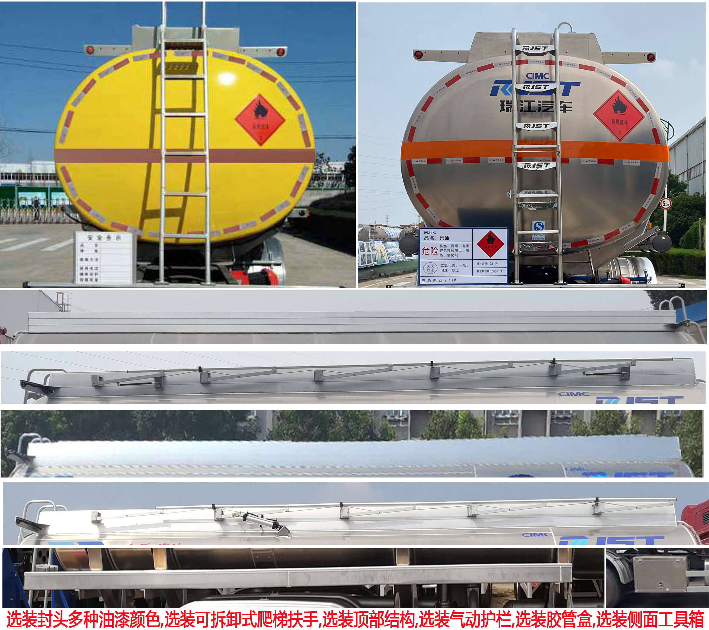 | 备注 | 随底盘选装平顶驾驶室,该车前轴装配盘式制动器,装配限速装置,限速79km/h.前置排气管.罐体有效容积为24.4立方米,运输车辆类型为FL,类项号为3.罐体外形尺寸(mm)8800×2250×1580.选装顶部结构,挡泥板.侧、后防护材质均采用铝合金,侧、后防护均采用螺栓连接式,后防护的下横向构件截面尺寸为(高×宽)(mm)150×60,离地高度为450mm.仅采用底盘子午线轮胎和带ABS的底盘.ABS系统生产厂家:浙江万安科技股份有限公司,型号:VIE ABS-Ⅱ,安装具有卫星定位功能的行驶记录仪.外形尺寸长/前悬/轴距(仅选用)/后悬对应为(mm):11900/1460/1950+4550+1350/2590;11850/1460/1900+4500+1350/2640.发动机型号/最大净功率(kw)/油耗(L/100km)对应关系:CA6DK1-28E5/206/43.71;CA6DK1-32E51/236/39.39;CA6DK1-28E51/206/39.39;CA6DL1-32E5/235/42.09. 该车后轴为采用空气悬架.该车型可选装ETC车载装置. | ||