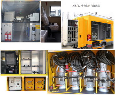 | 备注 | 车厢内设置工具柜,设备柜,配置部分工程设备和工具等工程施工的专用车.车顶选装防护栏及场地照明灯具,选装照明设备,选装顶置空调.选装不同造型的厢体及裙边,厢体两侧选装上掀式设备门,工具门,选装卷帘门,玻璃窗,裙边上选装工具门;车厢右侧选装工作舱门.后部选装单开门,选装后保险杠,后爬梯.随原车选装一组前照灯及前围外形,选装后组合灯具.ABS 系统型号 :APG3550500A4,生产企业:浙江亚太机电股份有限公司.两侧和后下部为裙边式围板防护替代侧后防护的功能,后防护离地高度为500mm.发动机最大净功率:93Kw. | ||
