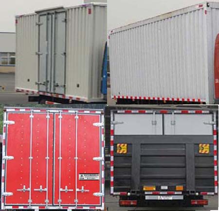 | 备注 | 1.厢体顶部封闭,不可开启。2.随底盘选装导流罩。厢体侧面选装开门和不开门二种型式,选装平面和瓦楞板结构型式,货厢后部选装双拉杆结构及选装尾板,尾板质量为450kg,尾板收起状态时的水平长度为295mm,选装尾板时仅选用断面尺寸Φ121的后防护,后防护材质:Q235,连接方式:焊接,离地高度470mm。3.护栏材质:Q235,与车架螺栓连接。后部防护断面尺寸(高×宽)为100×55(mm),离地高度400mm。4.ABS的型号及生产厂家:3631010-C2000/东科克诺尔商用车制动系统(十堰)有限公司,J ABS/焦作博瑞克控制技术有限公司。5.外形长度尺寸,大厢长度尺寸,轴距及后悬一一对应。6、所有发动机对应油耗申报值均为15.8L/100km。7、该车型可选装ETC车载装置。 | ||