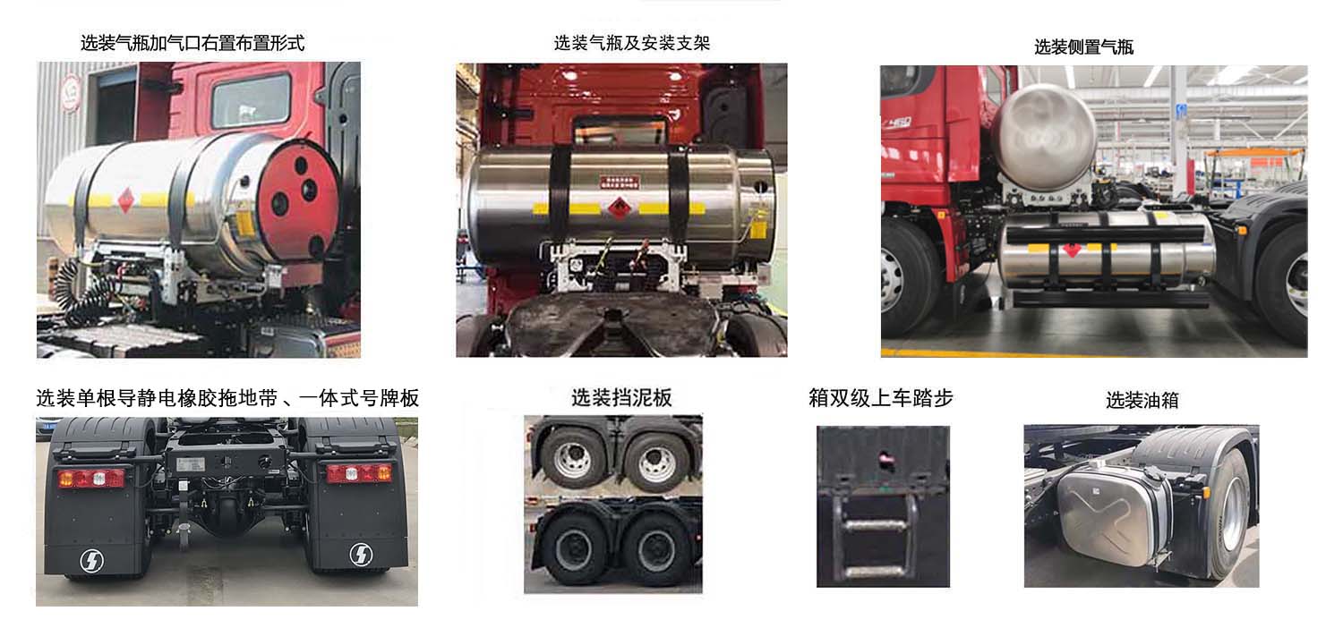 | 备注 | 1.选装同系列驾驶室及导流罩,选装前组合灯具(前组合灯具在各驾驶室上可相互选装)、保险杠,选装气瓶加气口右置布置形式,选装挡泥板及一体式号牌板,选装电瓶箱双级上车踏步,选装单条导静电橡胶拖地带,选装气瓶及安装支架;2.装半高顶驾驶室时整车高度为3170mm,装半高顶驾驶室带导流罩时整车高度为3600mm,装高顶驾驶室时整车高度为3700mm,装高顶驾驶室带导流罩时整车高度为4000mm(可选装顶置空调);3.WP11SNG390E62发动机最大净功率为282kw,WP11SNG410E62发动机最大净功率为296kw,WP13NG400E61发动机最大净功率为289kw;WP13NG430E61发动机最大净功率为311kw;WP13NG460E61发动机最大净功率为333kw;4.整备质量/驾驶室准乘人数/半挂车鞍座最大允许承载质量/准拖挂车总质量对应关系为:8800/2/16070/40000,8800/3/16005/40000,9300/2/15570/39500,9300/3/15505/39500,9600/2/15270/39200,9600/3/15205/39200;5.ABS系统生产厂家及型号为:西安正昌电子股份有限公司(ZQFB-V);6.安装带卫星定位功能的行驶记录仪.7,选装限速装置,限速89km/h;8,该车型可选装ETC车载装置. | ||