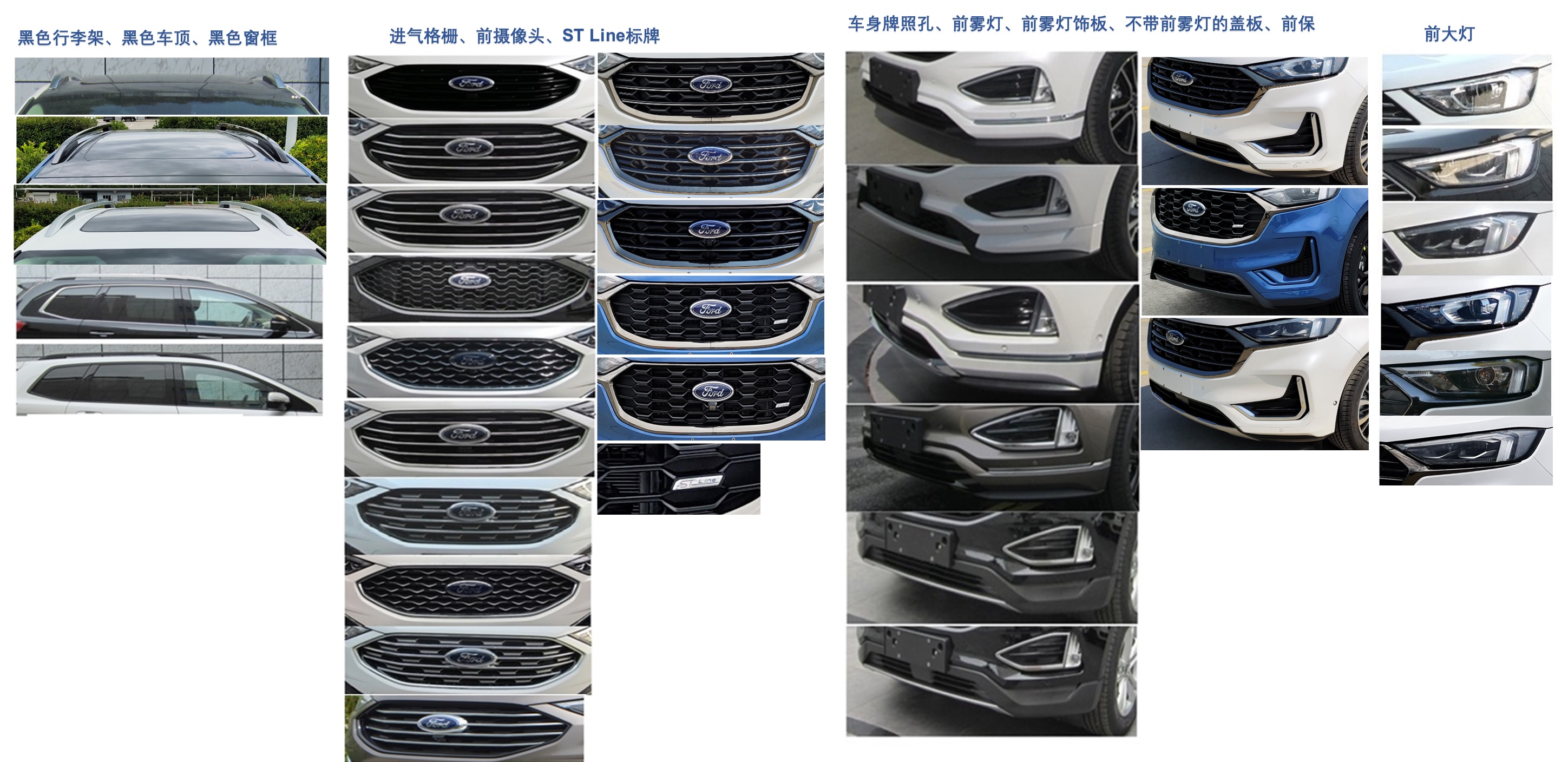 | 备注 | 1.ABS系统型号: *2GC-2B373-B*,ABS系统生产厂:大陆泰密克汽车系统(上海)有限公司;2.最大净功率:180kW;3.选装件:黑色行李架、黑色车顶、黑色窗框、进气格栅、前摄像头、ST Line标牌、车身牌照孔、前雾灯、前雾灯饰板、不带前雾灯的盖板、前保、前大灯、侧裙边、侧标识、轮圈、车身色门把手、烟熏色尾灯、黑色尾门饰板、尾门板上饰条、尾门板EDGE标牌、尾门板下饰条、黑色尾门踏板、黑铬尾门踏板、尾门标识、后保、侧雷达、长安福特字标造型. | ||