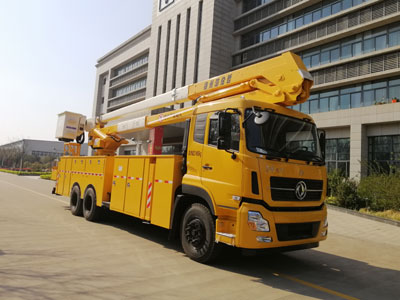 | 备注 | 前伸155mm,后伸160mm。轴距仅选用5350+1350mm。随底盘选装前雾灯;选装驾驶室前面罩;驾驶室顶部中间三个装饰灯为选装件;选装驾驶室侧窗。该车型装备有支腿,转台,臂架,工作平台等部件的高空作业装置,可将作业人员与工具送到指定高度位置进行作业。ABS型号/生产厂家:3631010-C2000/东科克诺尔商用车制动系统(十堰)有限公司,ABS 8/东科克诺尔商用车制动系统(十堰)有限公司。侧防护为裙板式结构,材料Q235钢;后防护材质为Q235钢,采用螺栓连接,断面尺寸为150mm×60mm,下缘离地高度500mm。 | ||