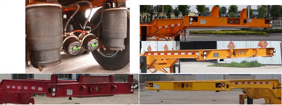 | 备注 | 该车用于运输45英尺集装箱.集装箱型号为:1EE,牵引销处车架总高度210mm,180mm,160mm,140mm.选装前部结构,导向块样式,选装挡泥板.选装空气悬架,选装大梁打孔,选装前脖三道梁结构,牵引销至车辆最前端的距离/轴距/后悬尺寸对应关系:450/8400+1310+1310/2480,650/8400+1310+1310/2280,650/8200+1310+1310/2480,850/8200+1310+1310/2280,1050/7800+1310+1310/2480,1250/7800+1310+1310/2280,一,ABS:型号:HNABS4S/4M;生产厂家:梁山海纳电子科技发展有限公司.二,防护材料均采用Q235B,与车身的连接方式为焊接,后下部防护装置的断面尺寸(mm):140×50,离地高度480mm. | ||